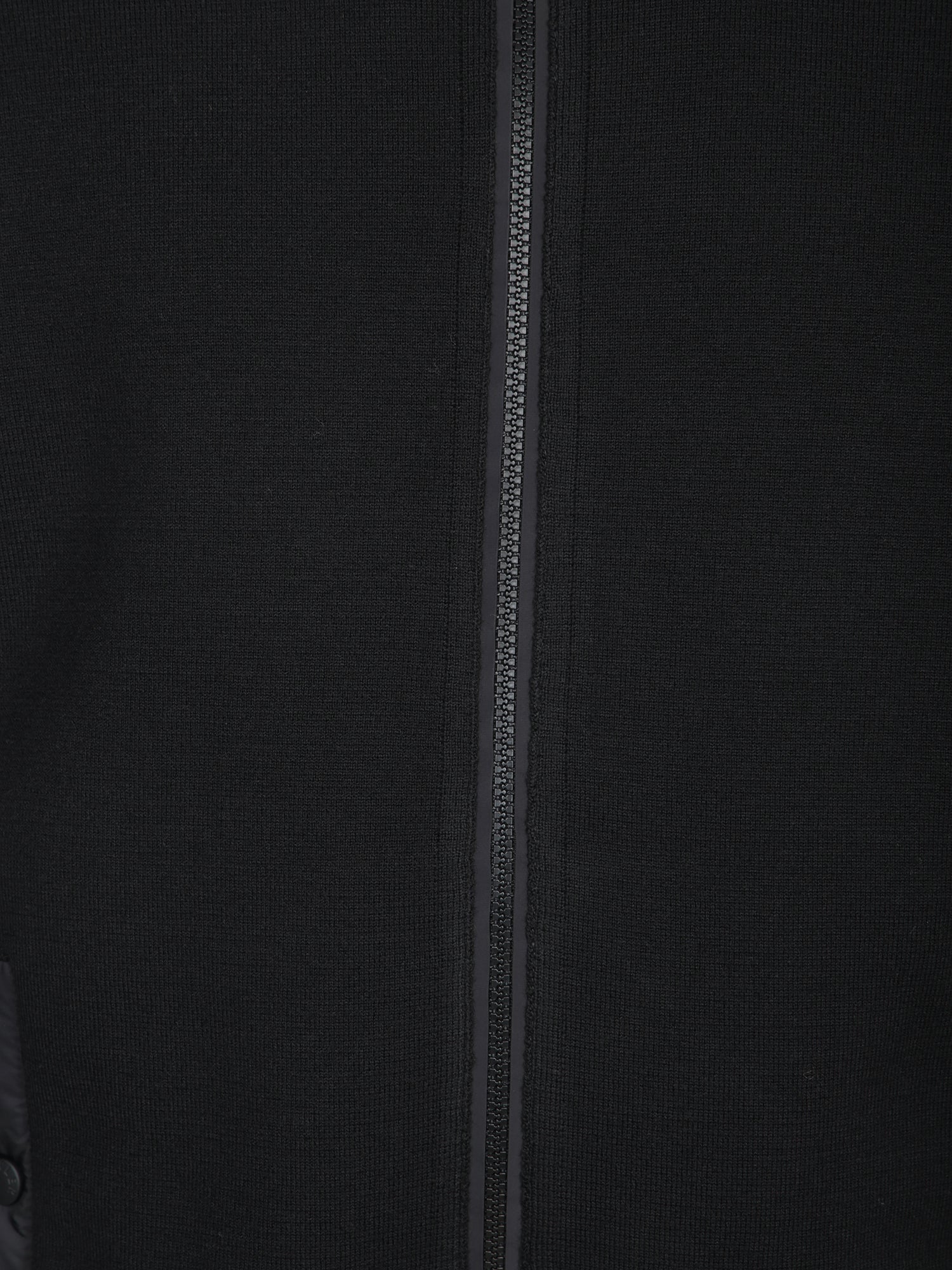 Cardigan featuring a zip closure, high neck, and technical fabric details on the shoulders.