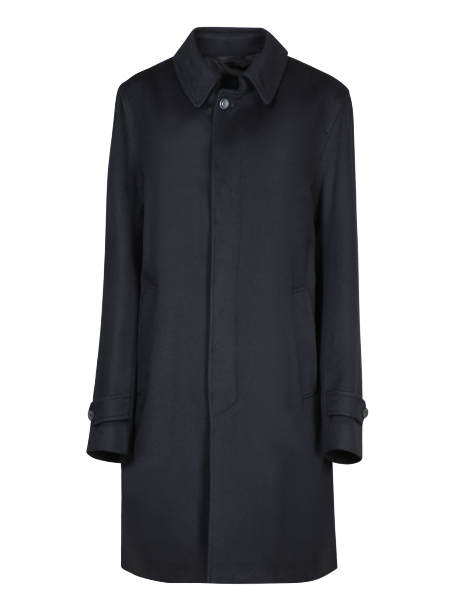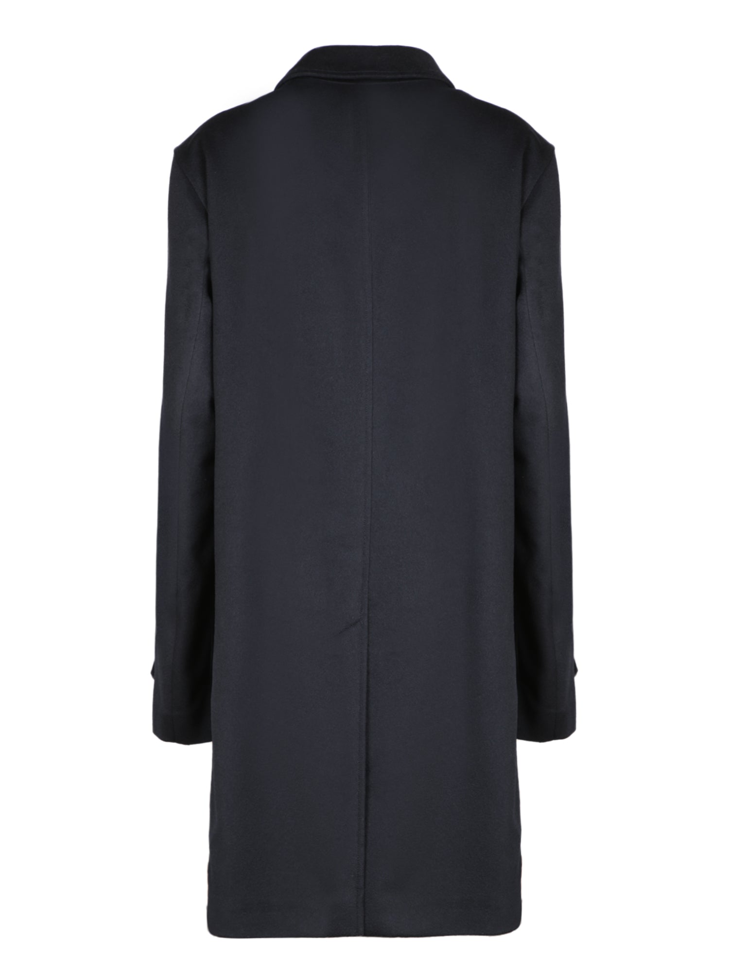 High-quality cashmere coat featuring a classic collar, button-front closure, and invisible side pockets.