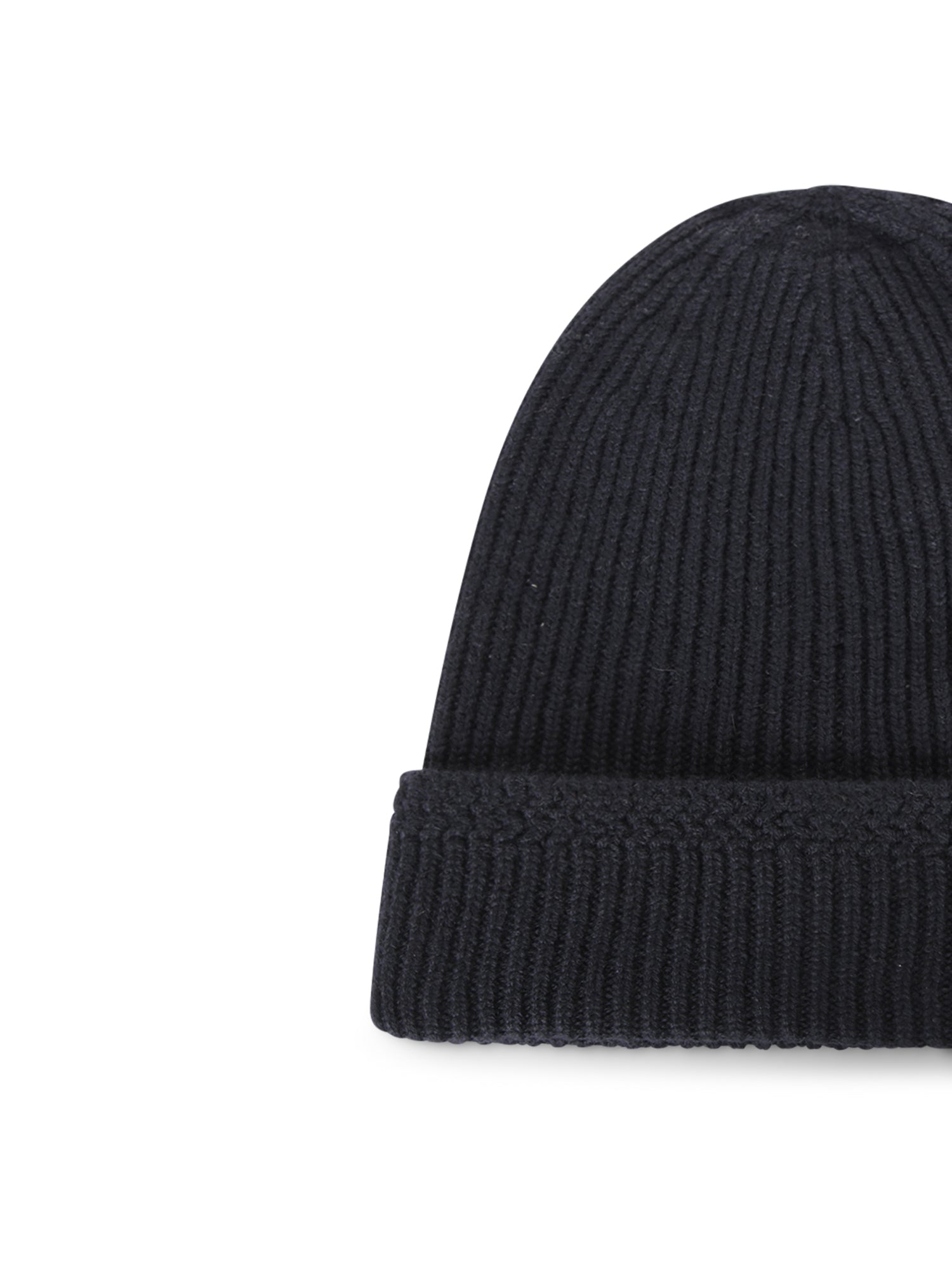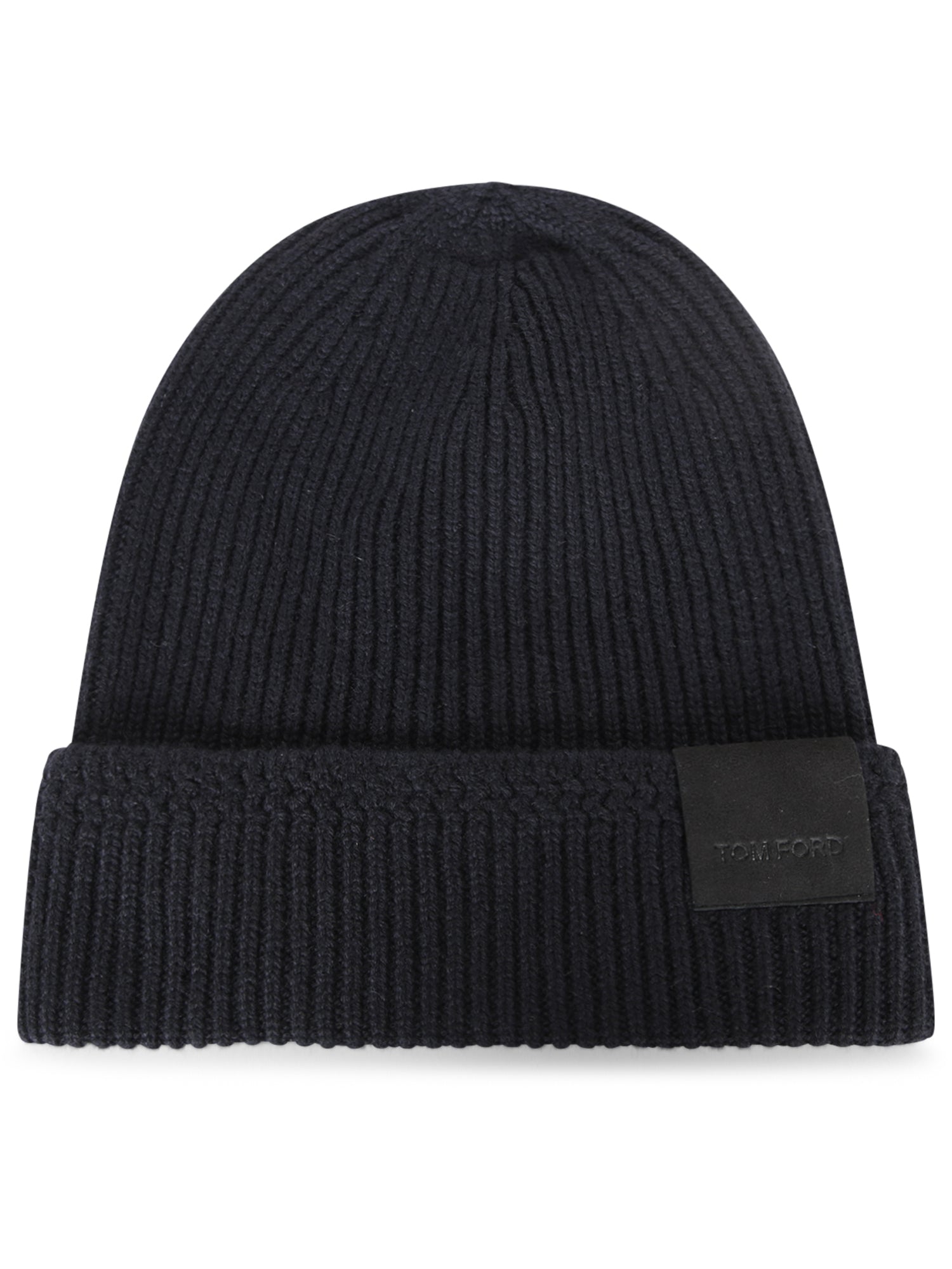 Knitted cashmere hat. Tone-on-tone with visible logo.