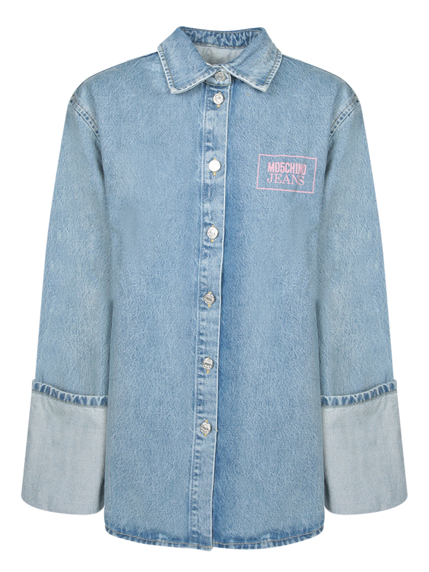 Denim shirt with a classic collar and button front closure. Moschino Jeans logo on the chest.