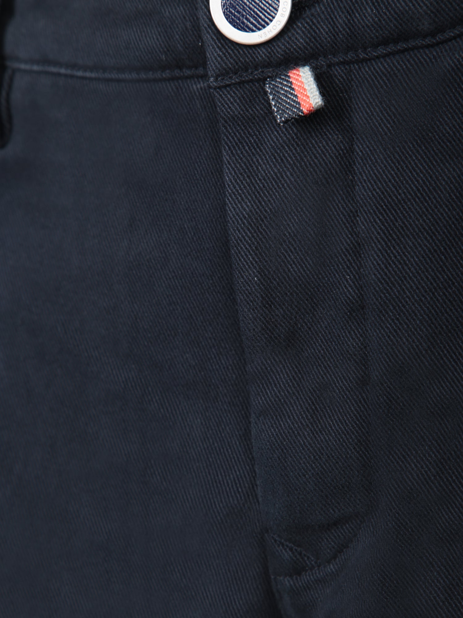 Cotton blend trousers. Zip and button closure. Belt loops at the waist.