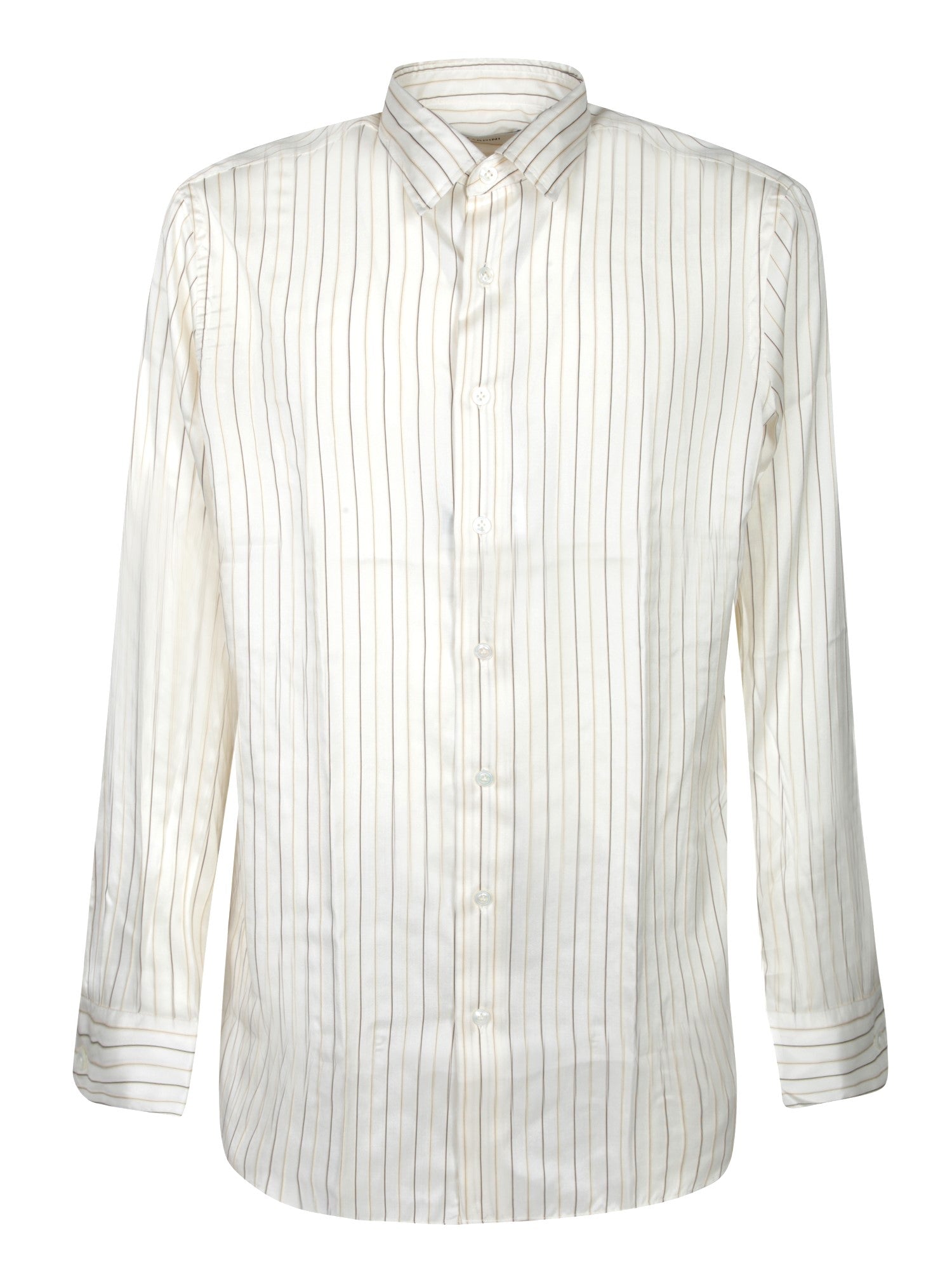 Elegant Lardini shirt crafted in pure silk, featuring a fine brown stripe on a cream base that adds a touch of classic sophistication to your wardrobe.