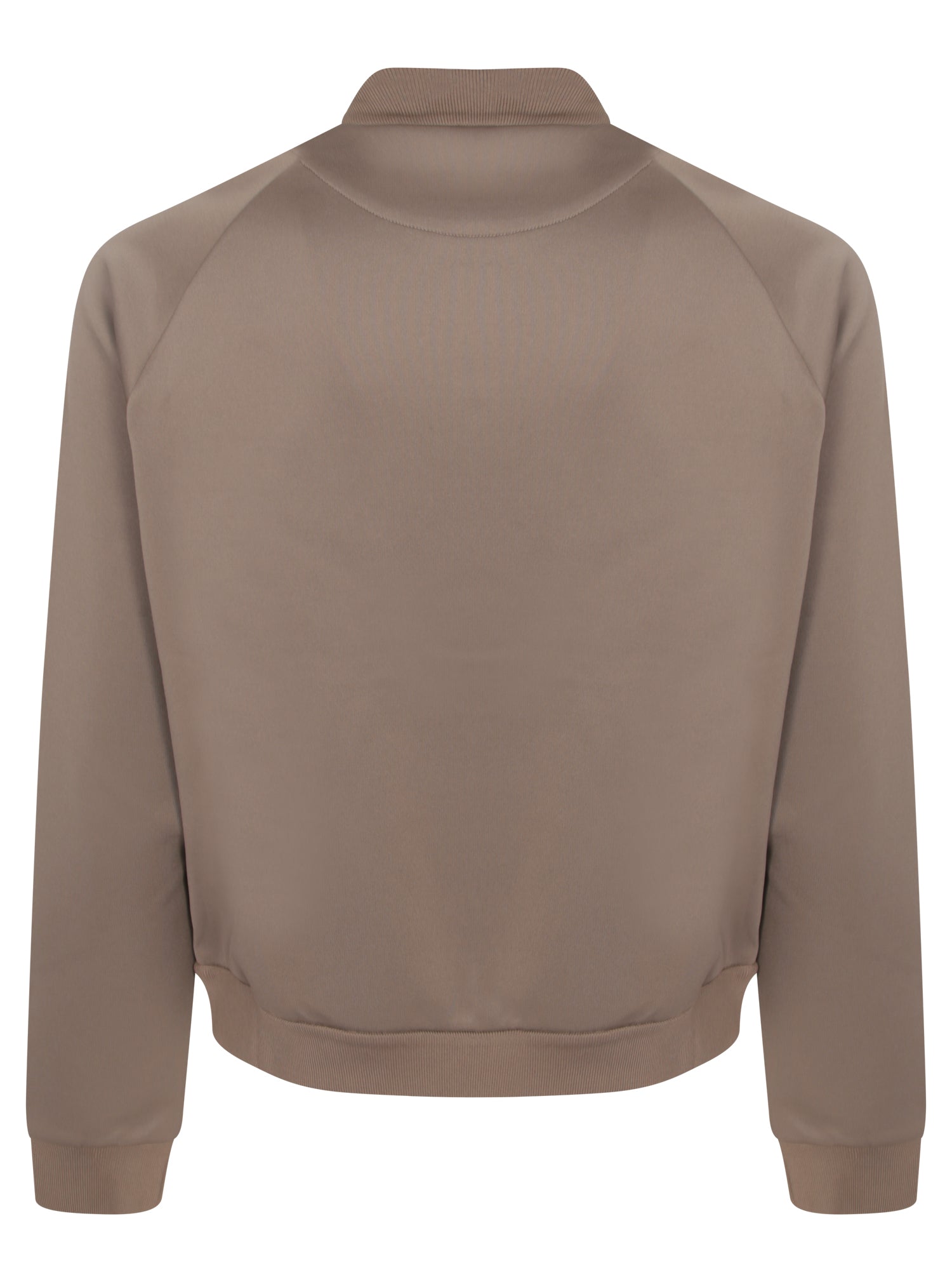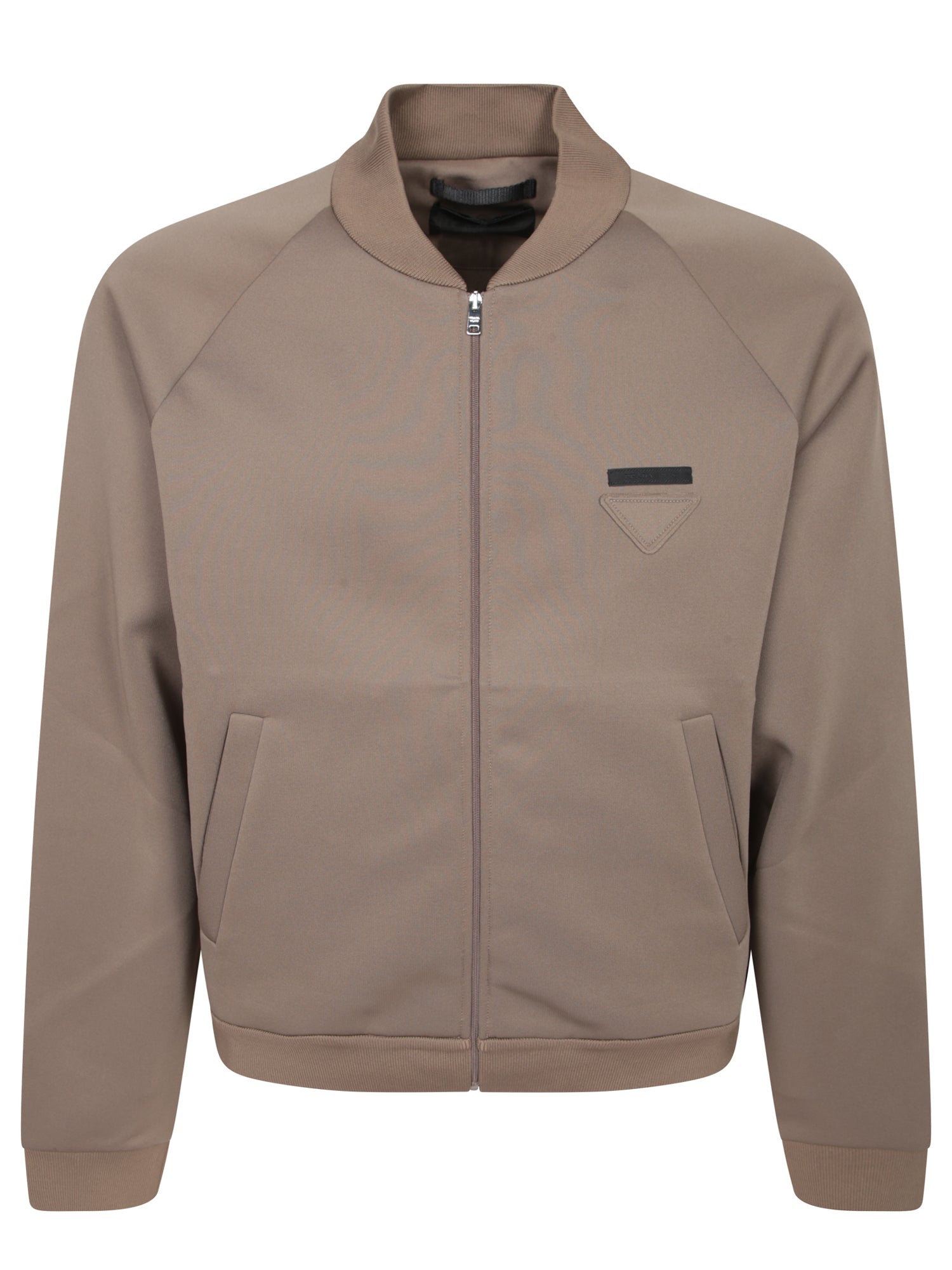 Technical fabric bomber jacket with zip closure. Rib-knit collar, cuffs, and hem. Side pockets.