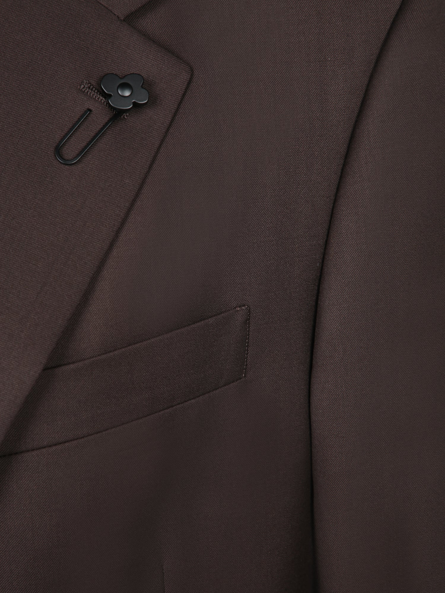 Single-breasted jacket with notch lapels. Two-button closure. Flap welt pockets and a chest pocket.