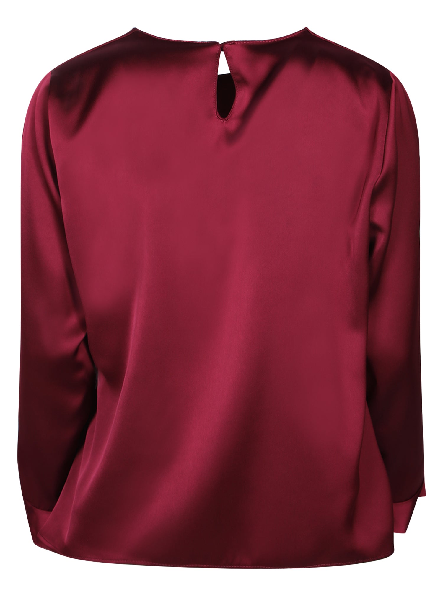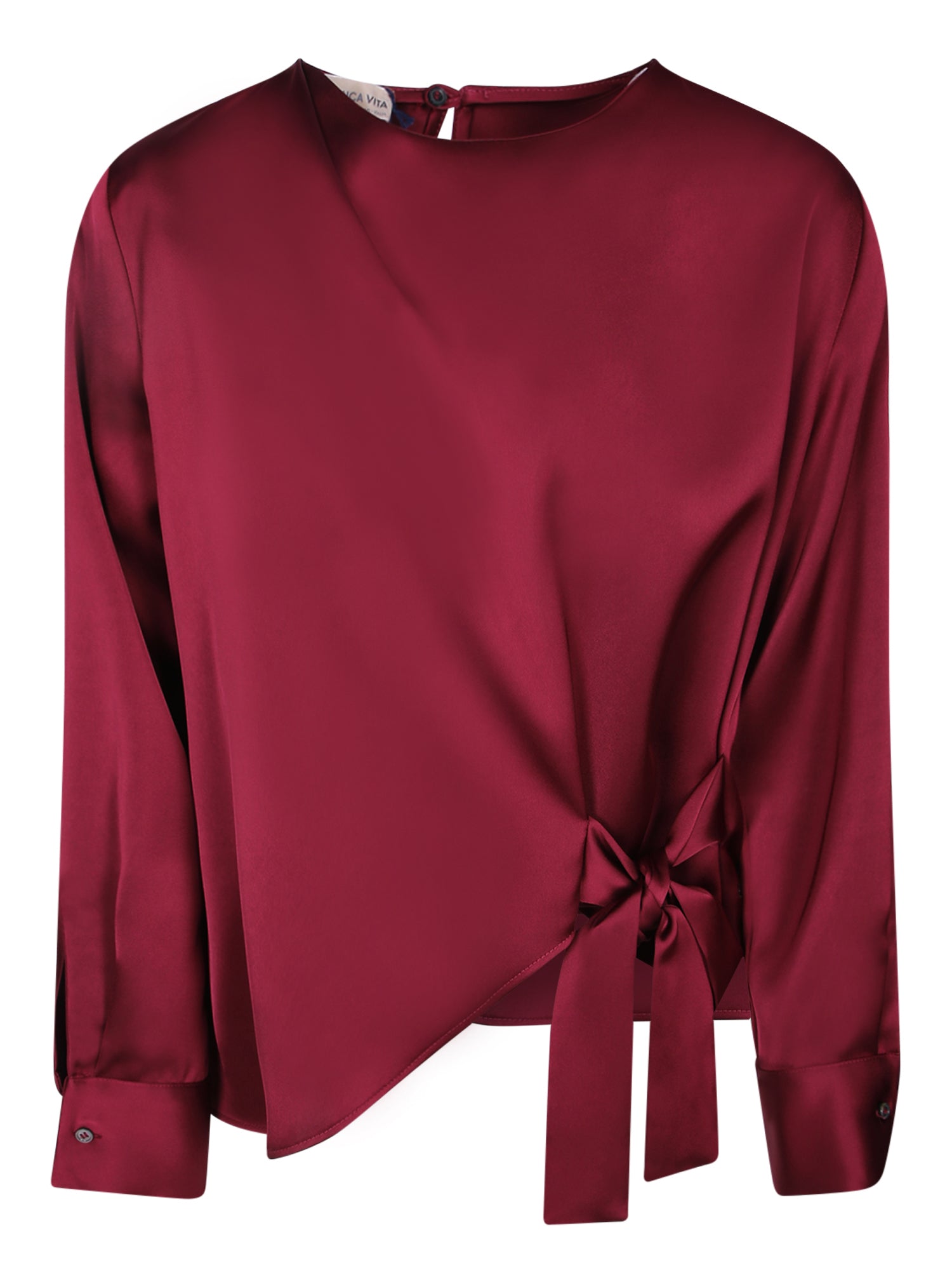 Long sleeves with buttoned cuffs. Adjustable front knot. Rear zip closure.