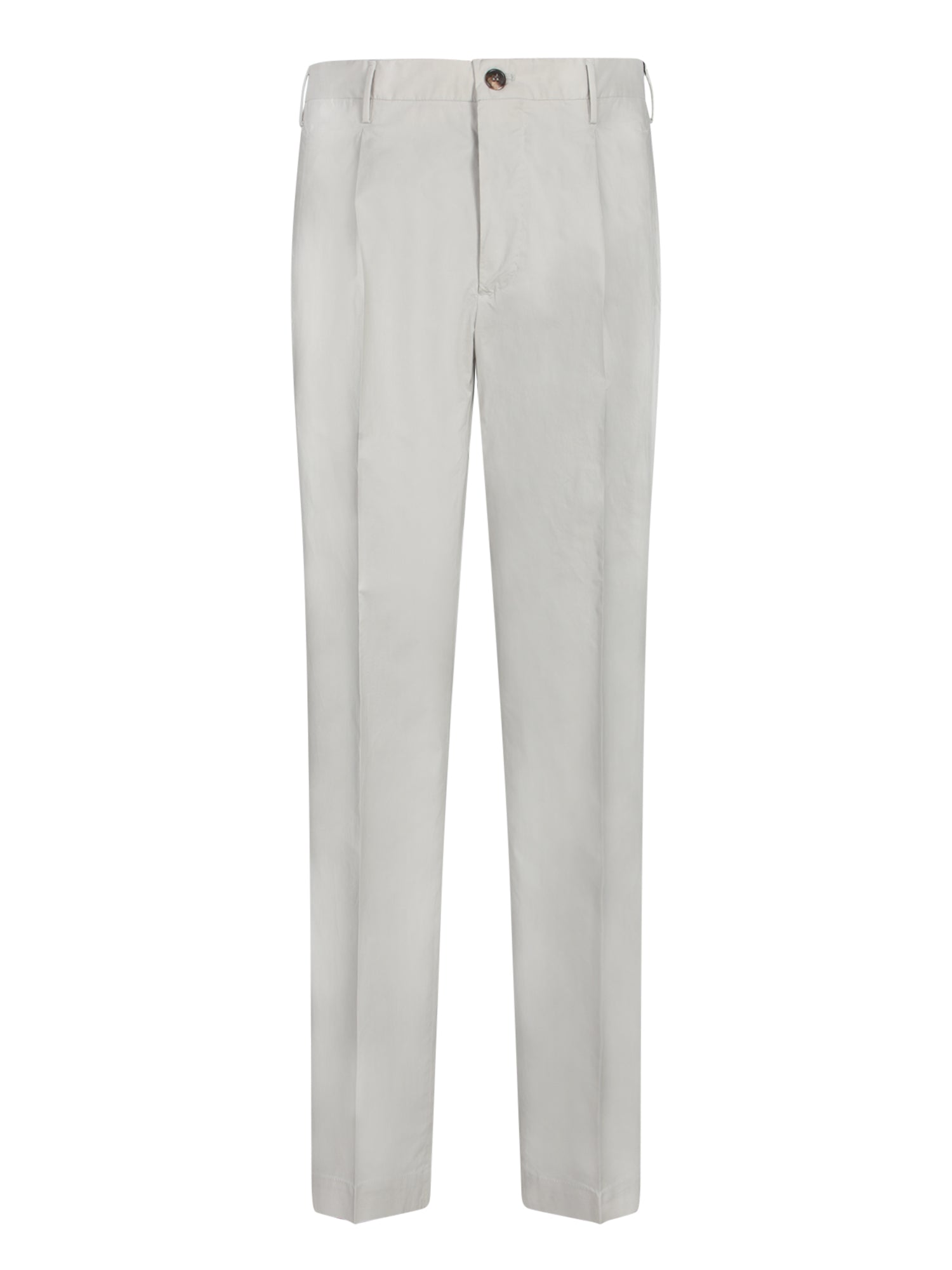 Featuring a curved fit and a horn button, made from lightweight cotton poplin, these trousers offer a modern and essential silhouette.