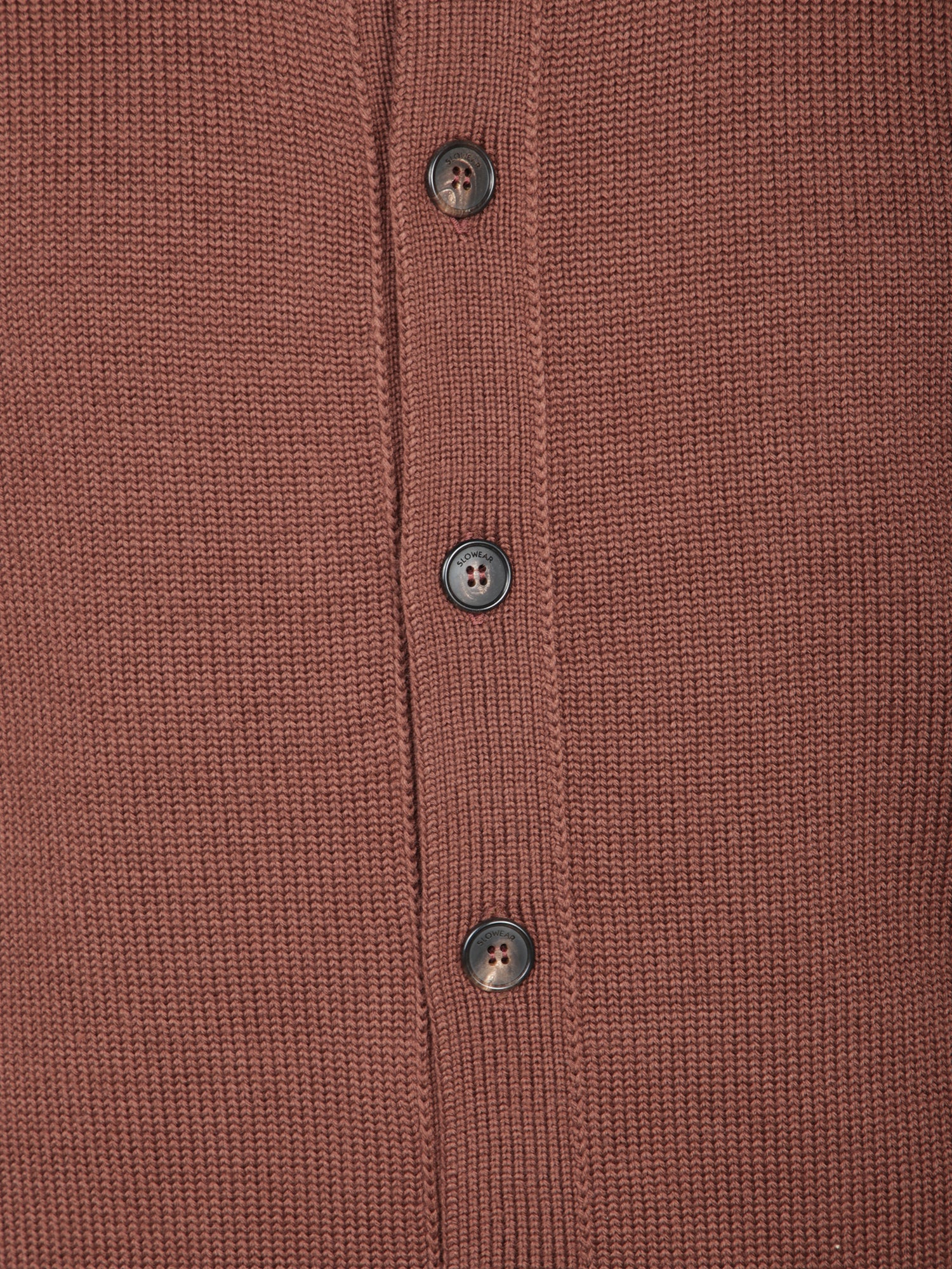 Raised collar, button closure, long sleeves, ribbed hem and cuffs.