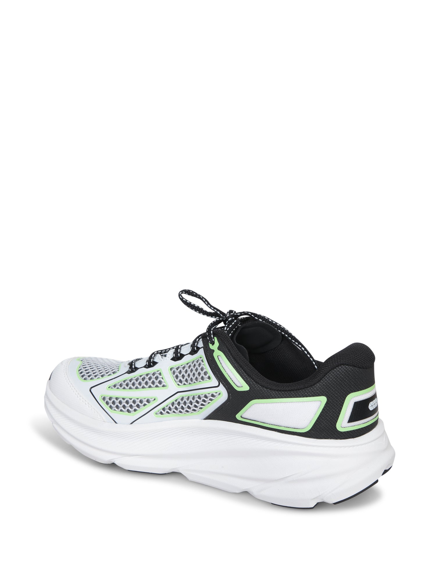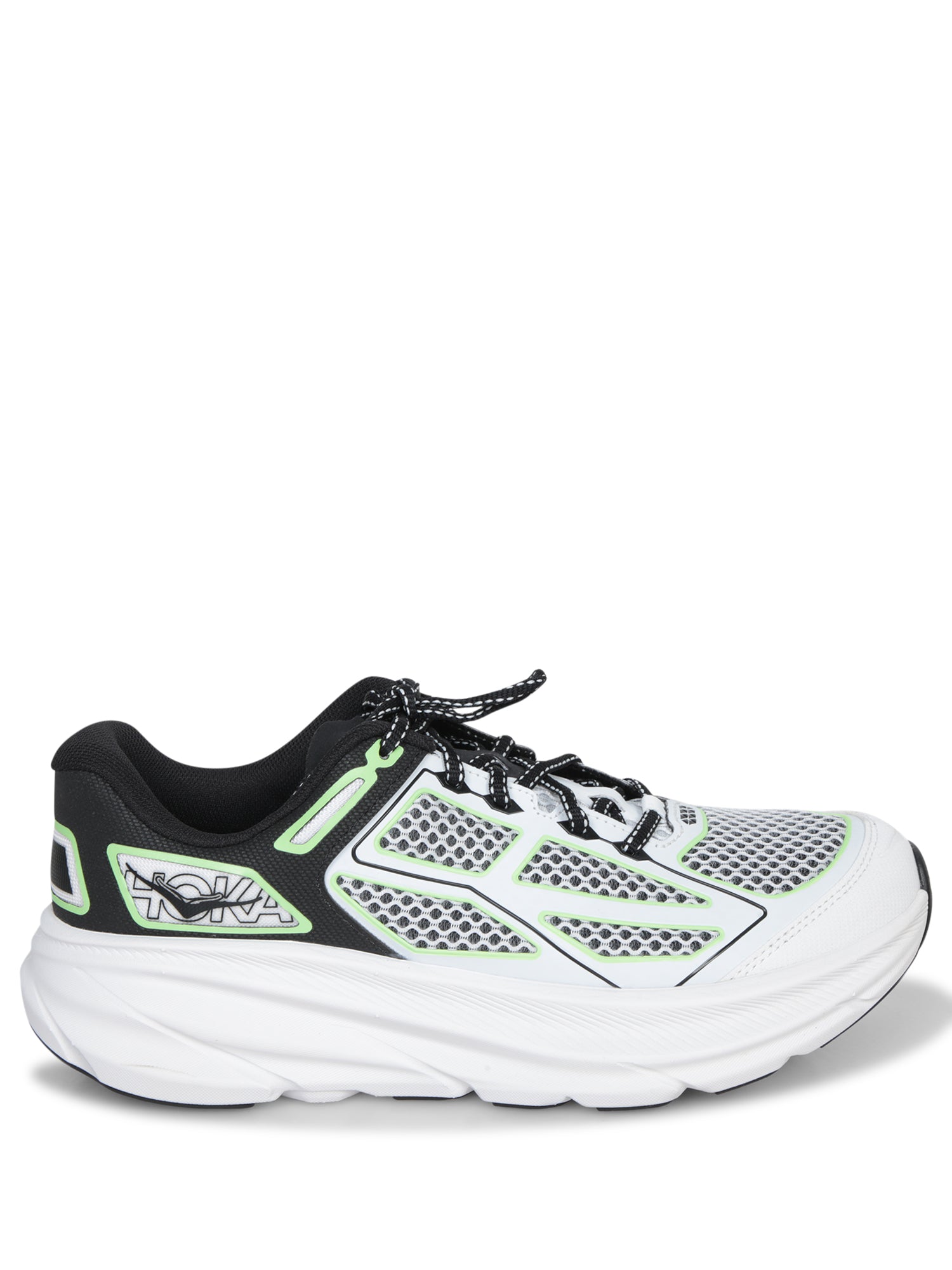 These Hoka One One sneakers blend high-performance technology with bold styling, featuring superior cushioning for extended comfort and reflective details for nighttime visibility.
