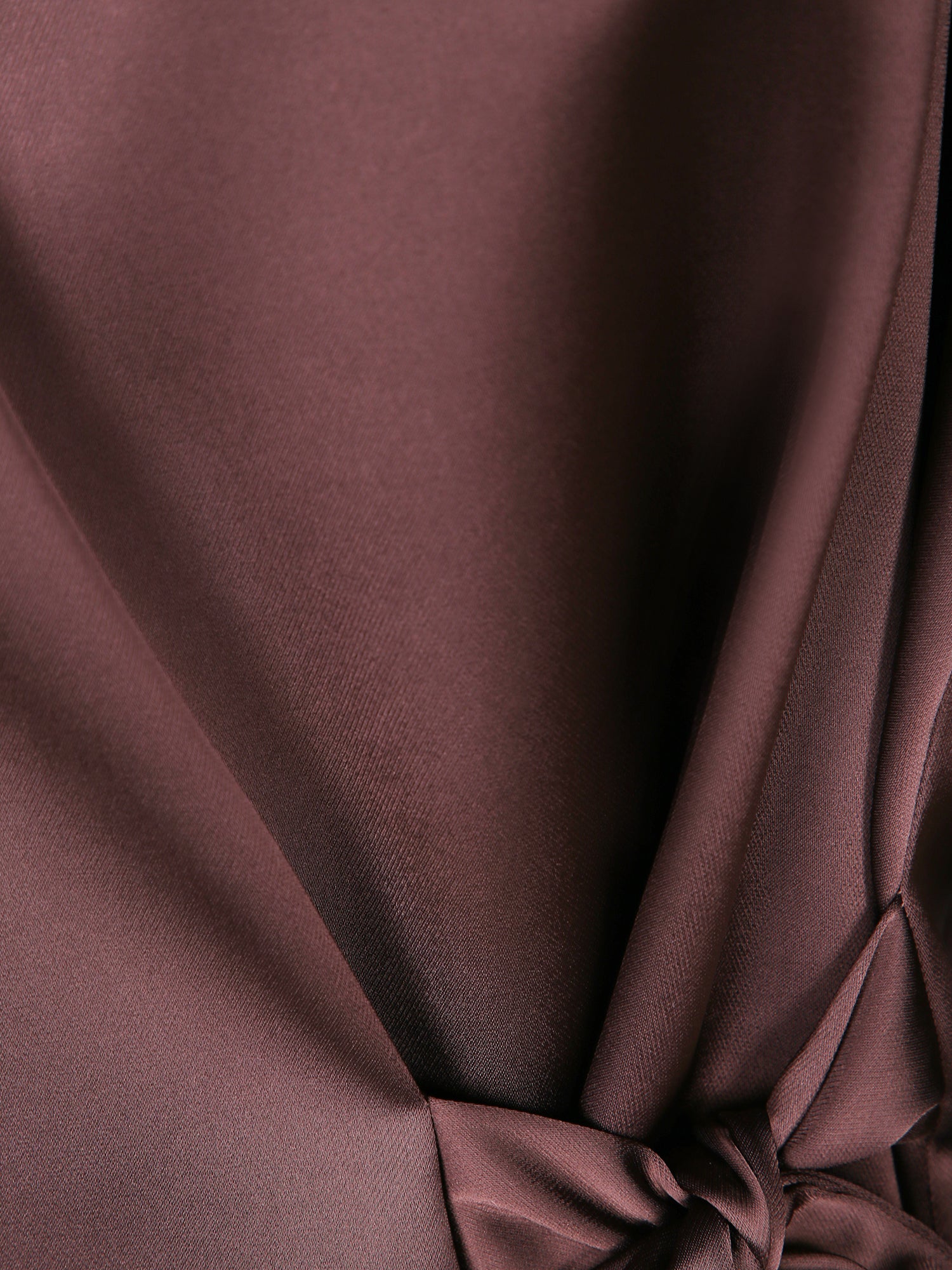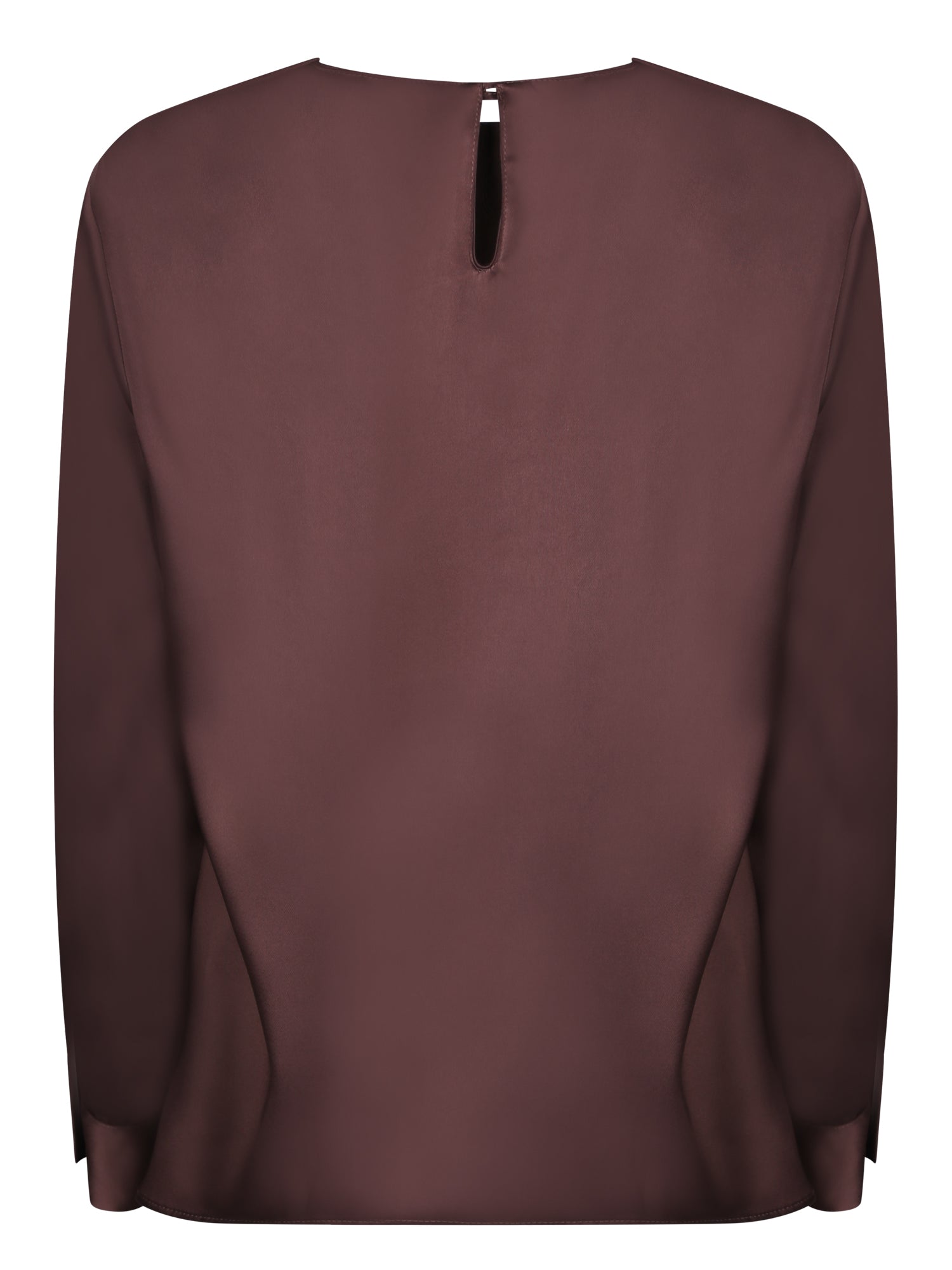 Elegant blouse with waist tie, long sleeves with buttoned cuffs, round neckline with back closure.