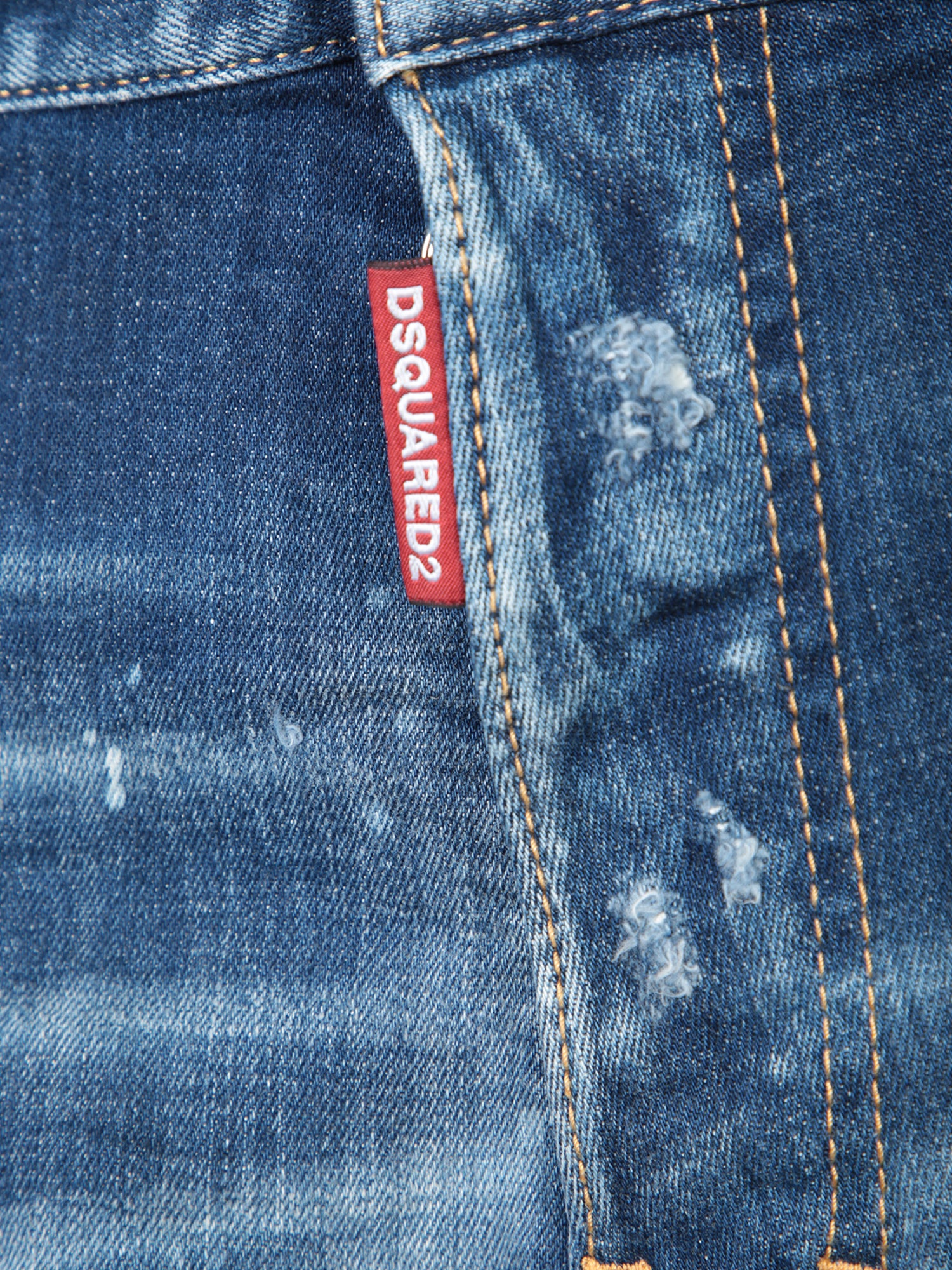 Slim fit jeans. Distressed effect and ripped details. Button closure.