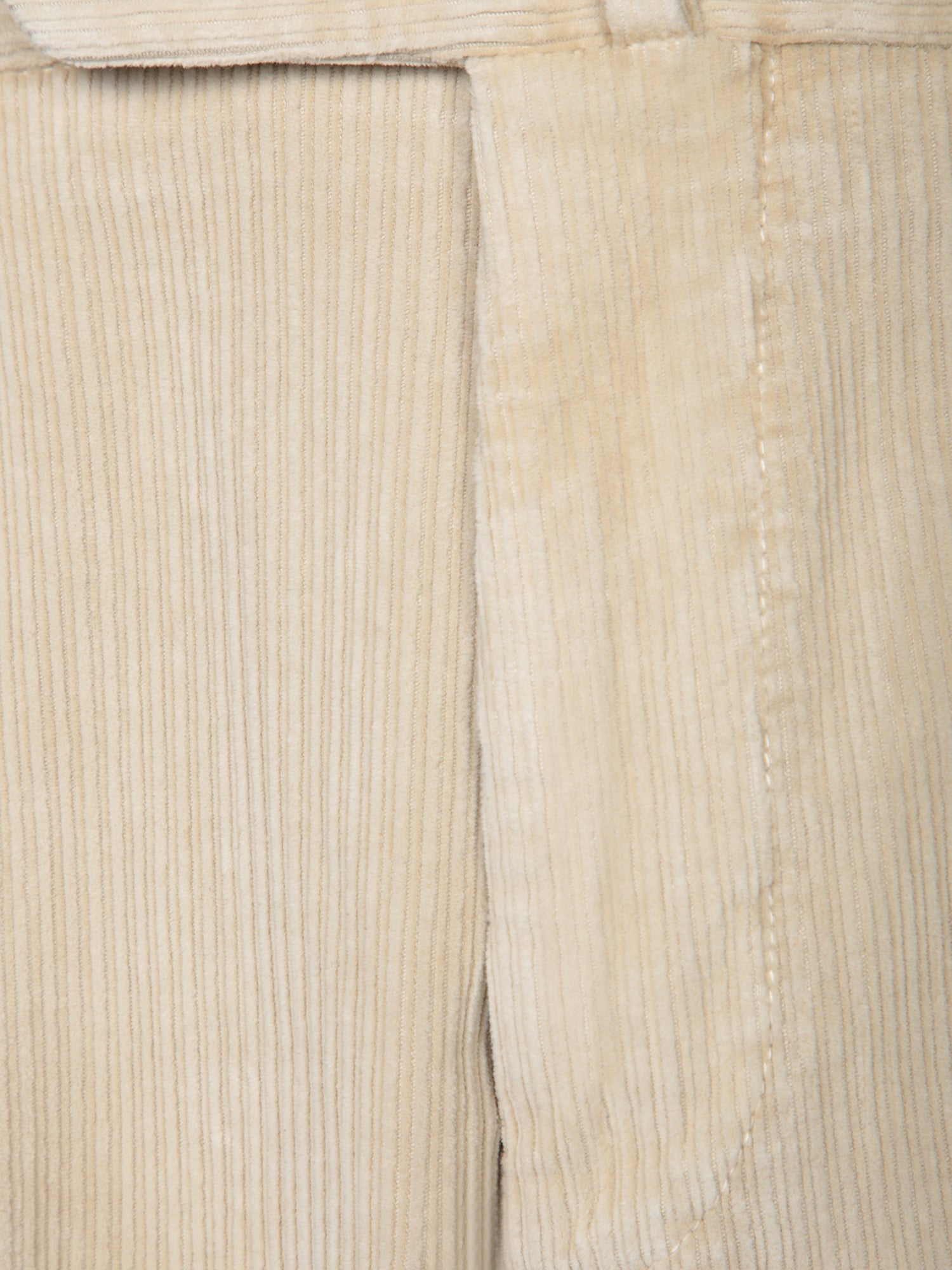 Corduroy trousers with a straight cut. Side and back pockets. Zip and button closure.