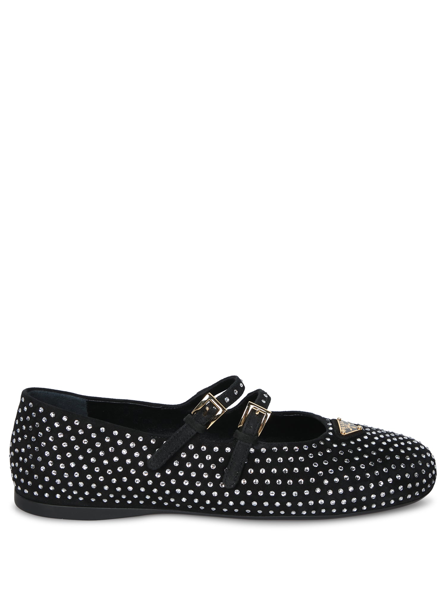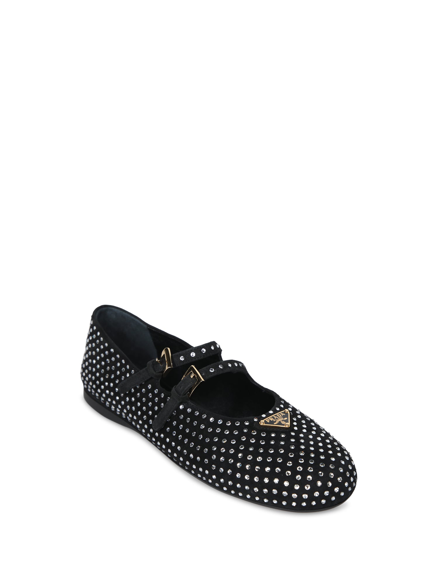These elegant PRADA ballerinas are perfect for adding a touch of luxury to any outfit. Crafted from soft velvet and adorned with sparkling crystals, they provide both comfort and style.