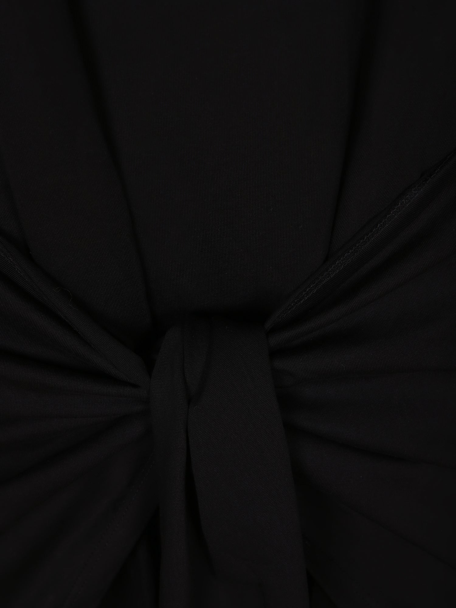 Short sleeves, crew neck, jersey fabric, front knot detail.