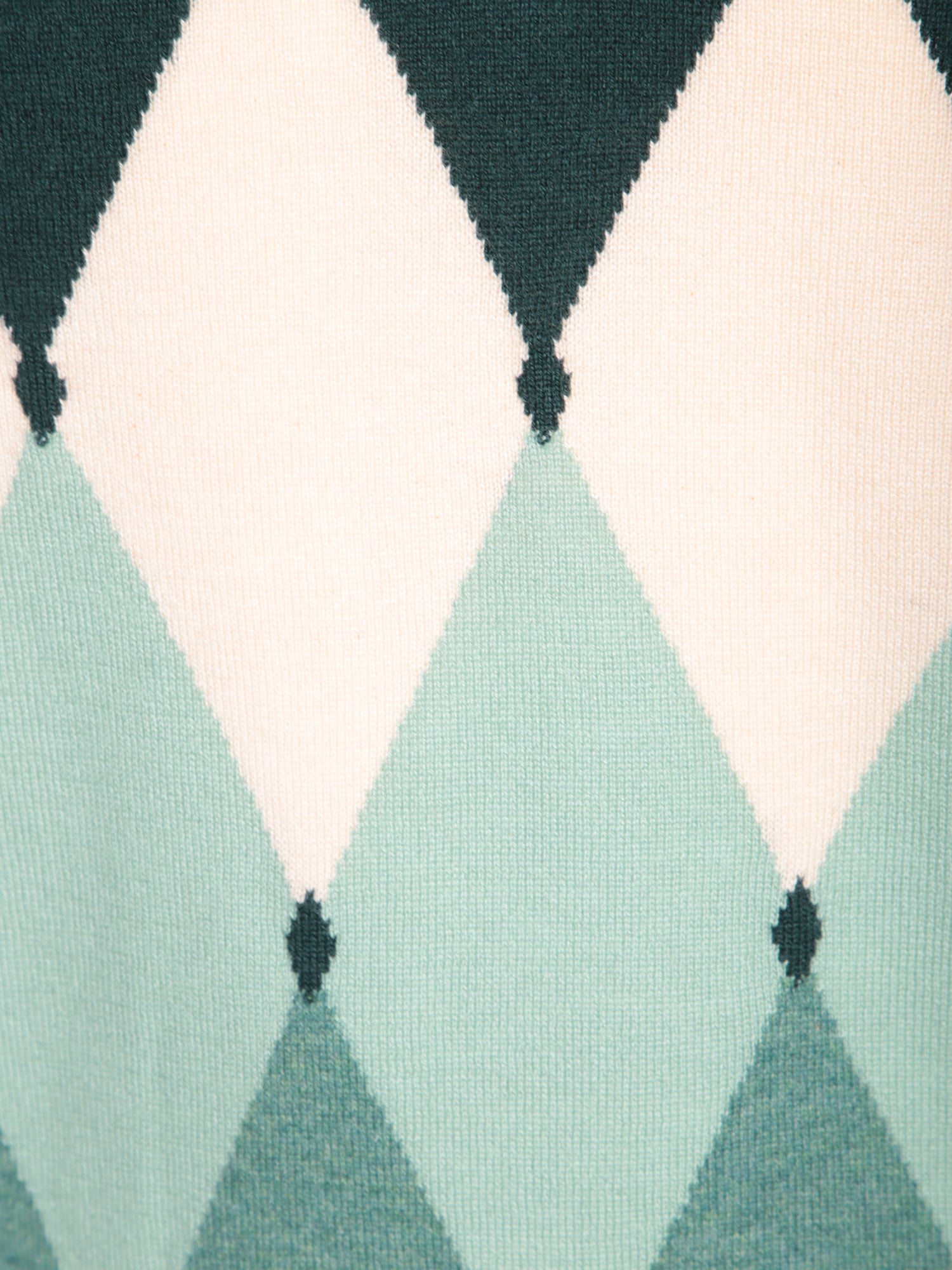 Scollo a V. Maniche lunghe. Dettagli a coste. Costruzione a maglia. Motivo a rombi frontale. Cuciture tono su tono. Vestibilità regolare. Orlo dritto. Colore: beige/ verde scuro