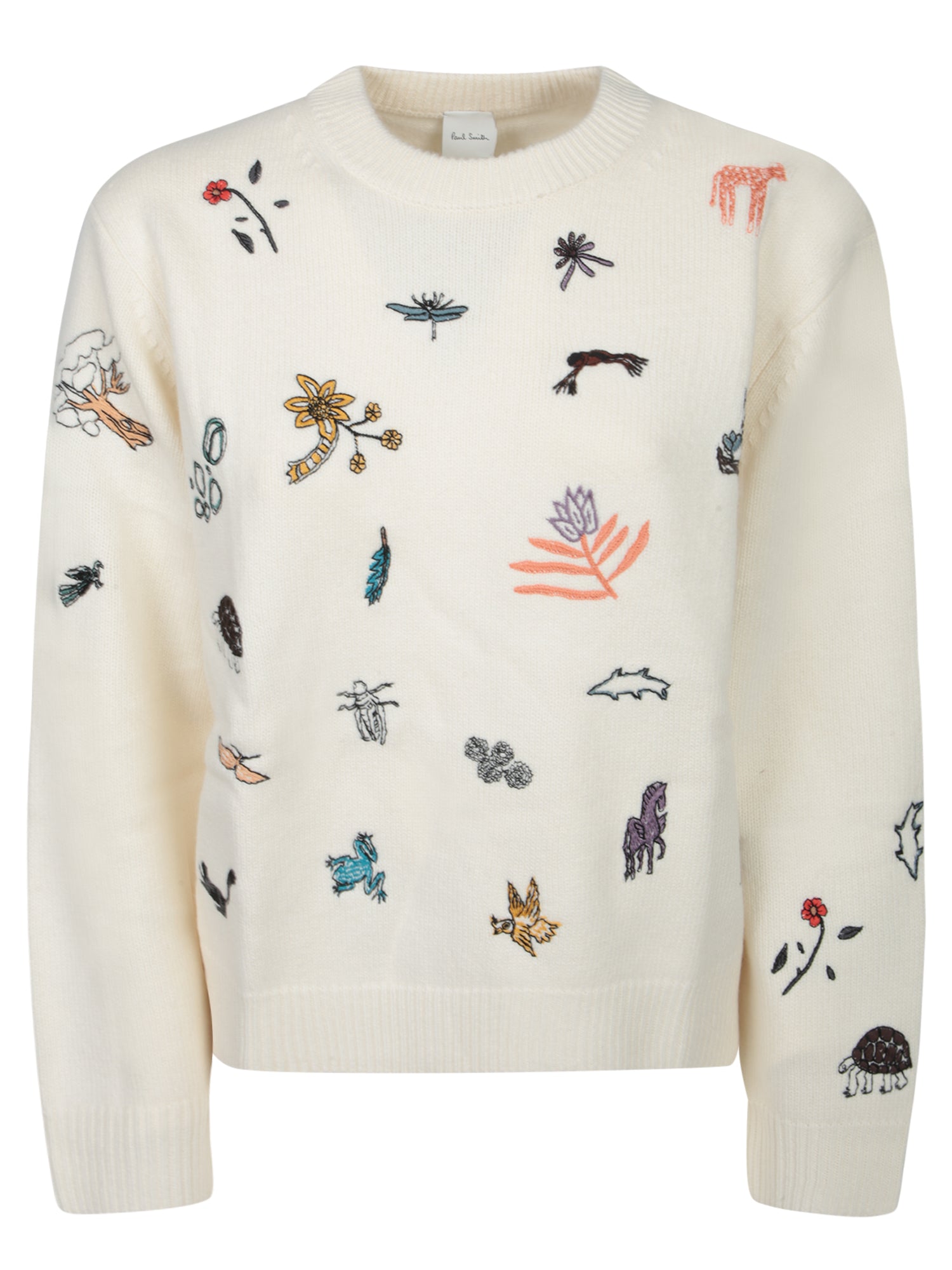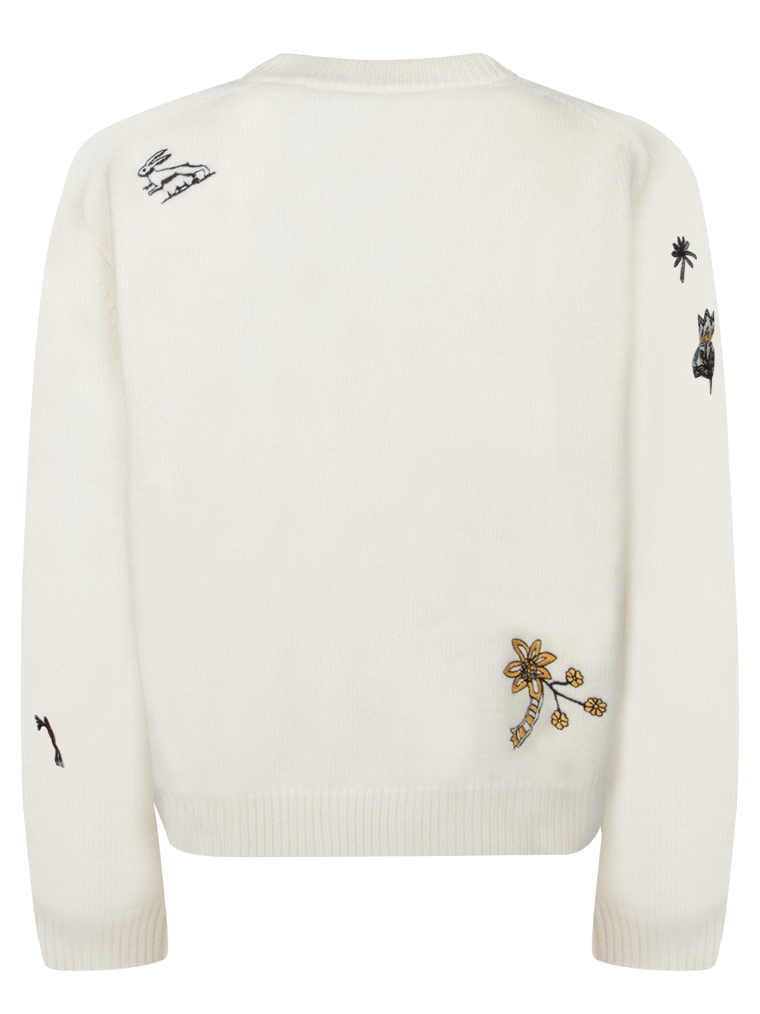 Embroidered Flora and Fauna Crewneck Sweater