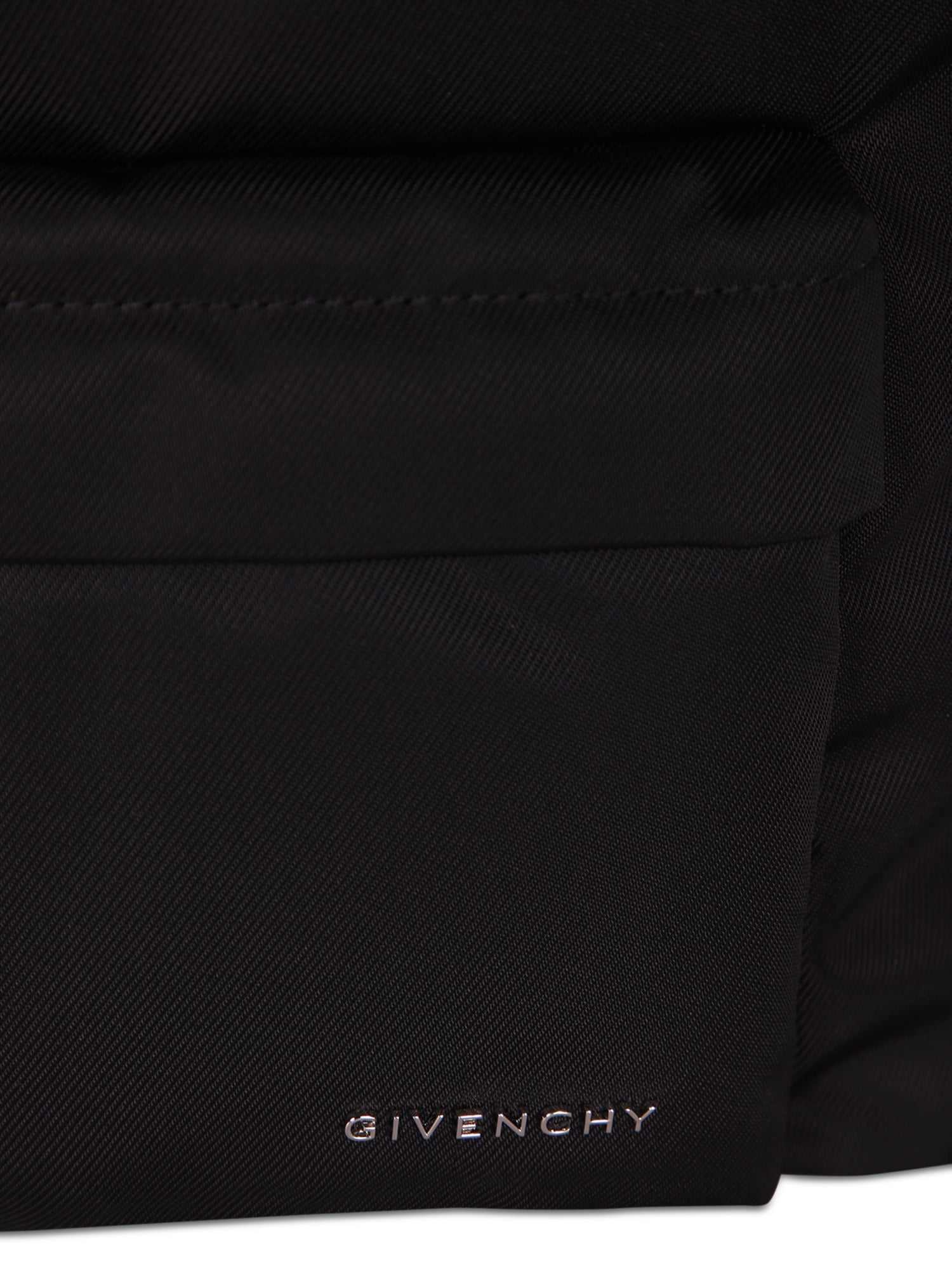 Durable technical fabric backpack. Features a front zip pocket, adjustable shoulder straps, and a contrasting Givenchy logo.