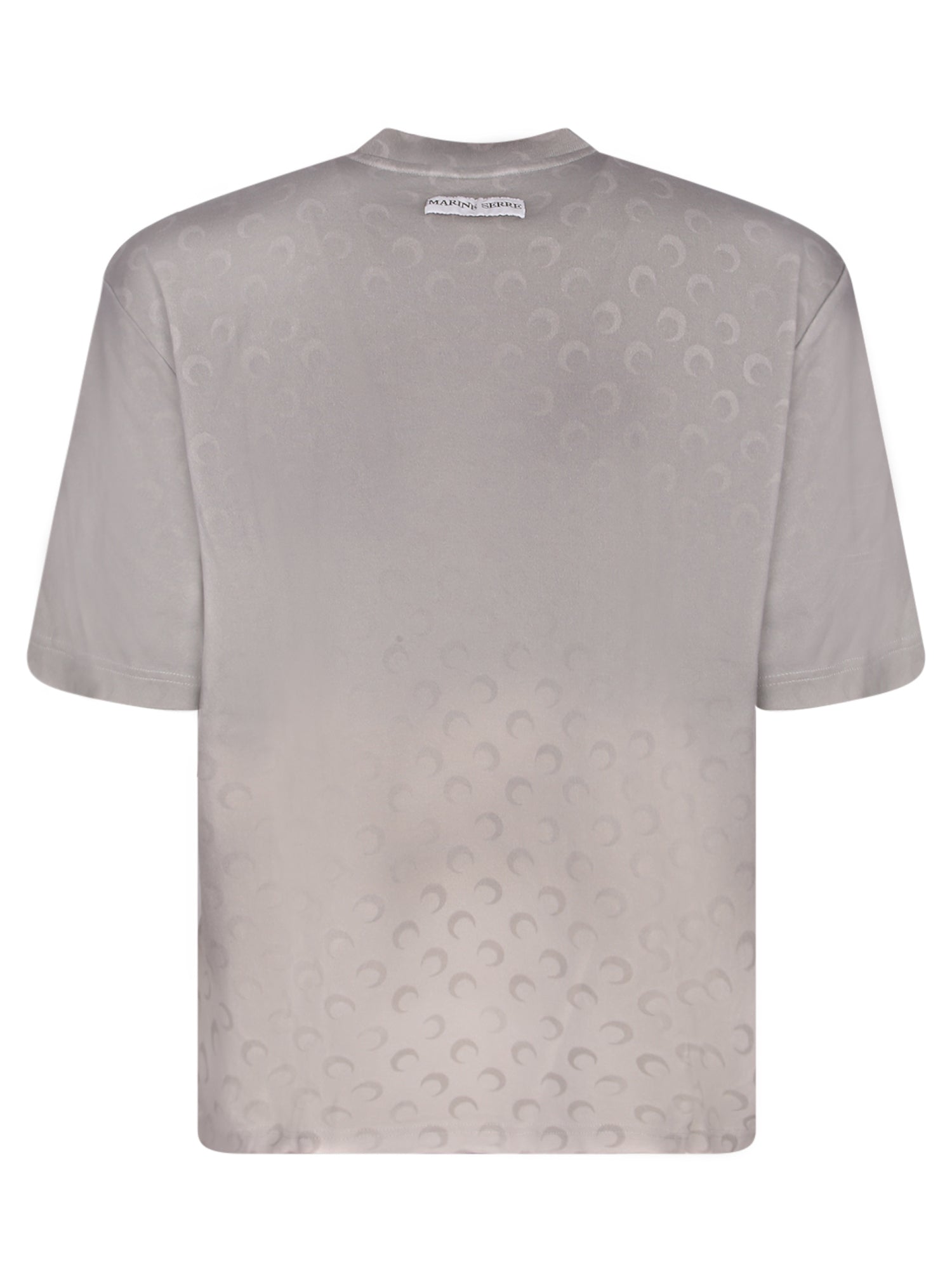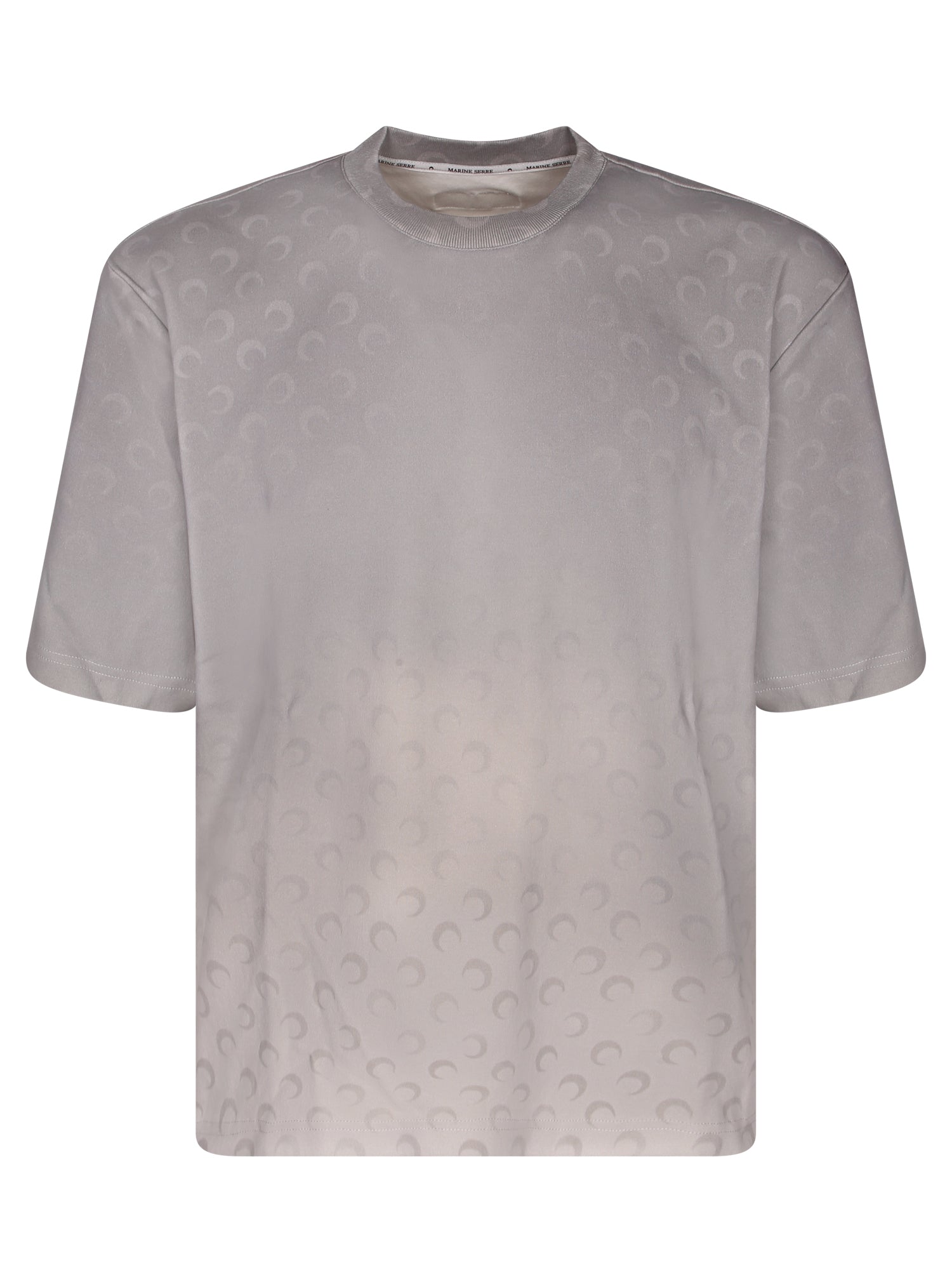Short sleeves. Tonal moon logo pattern. Knitted crew neck.