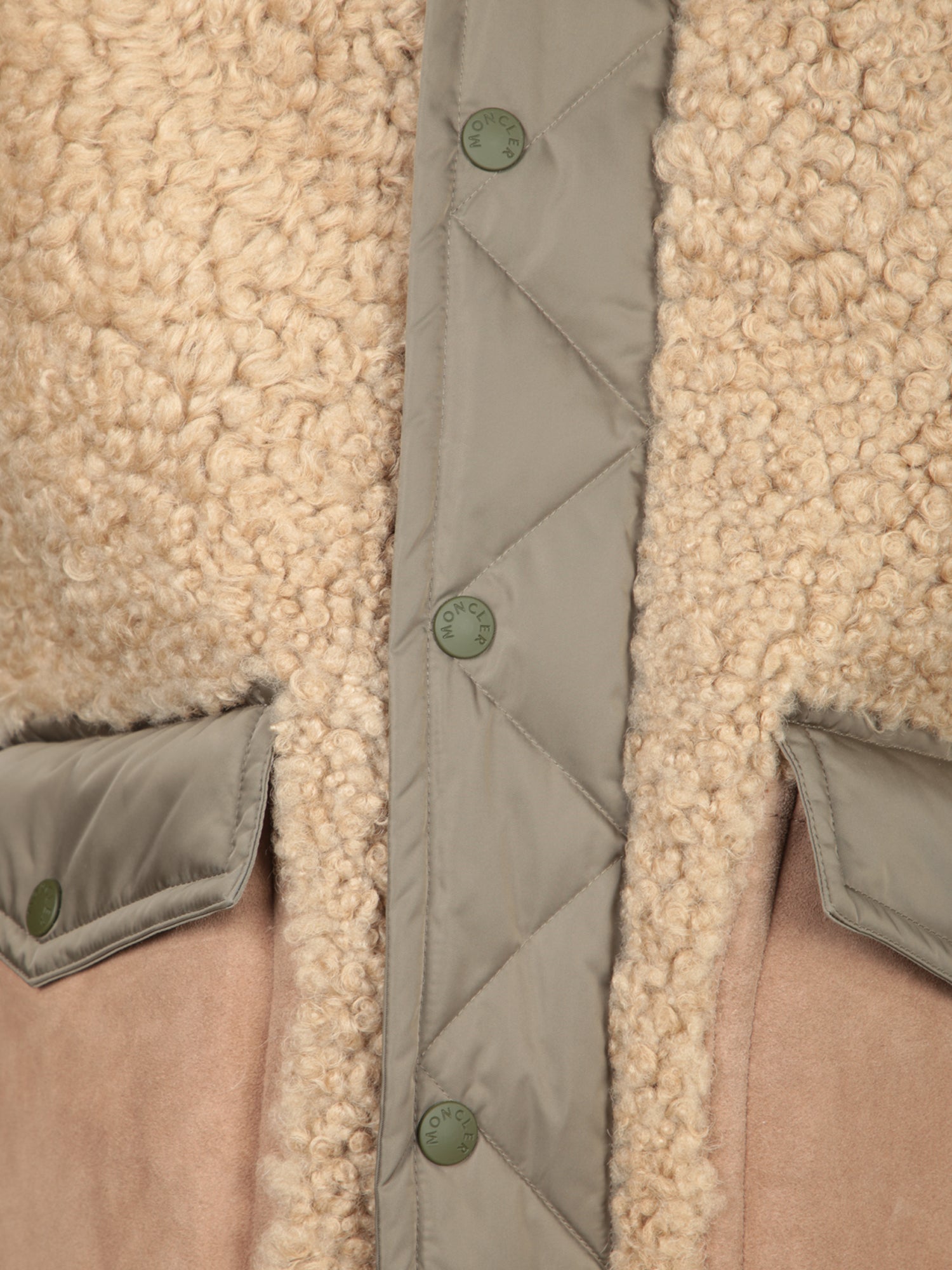 Down jacket with synthetic fur details. Snap button front closure. Flap side pockets.