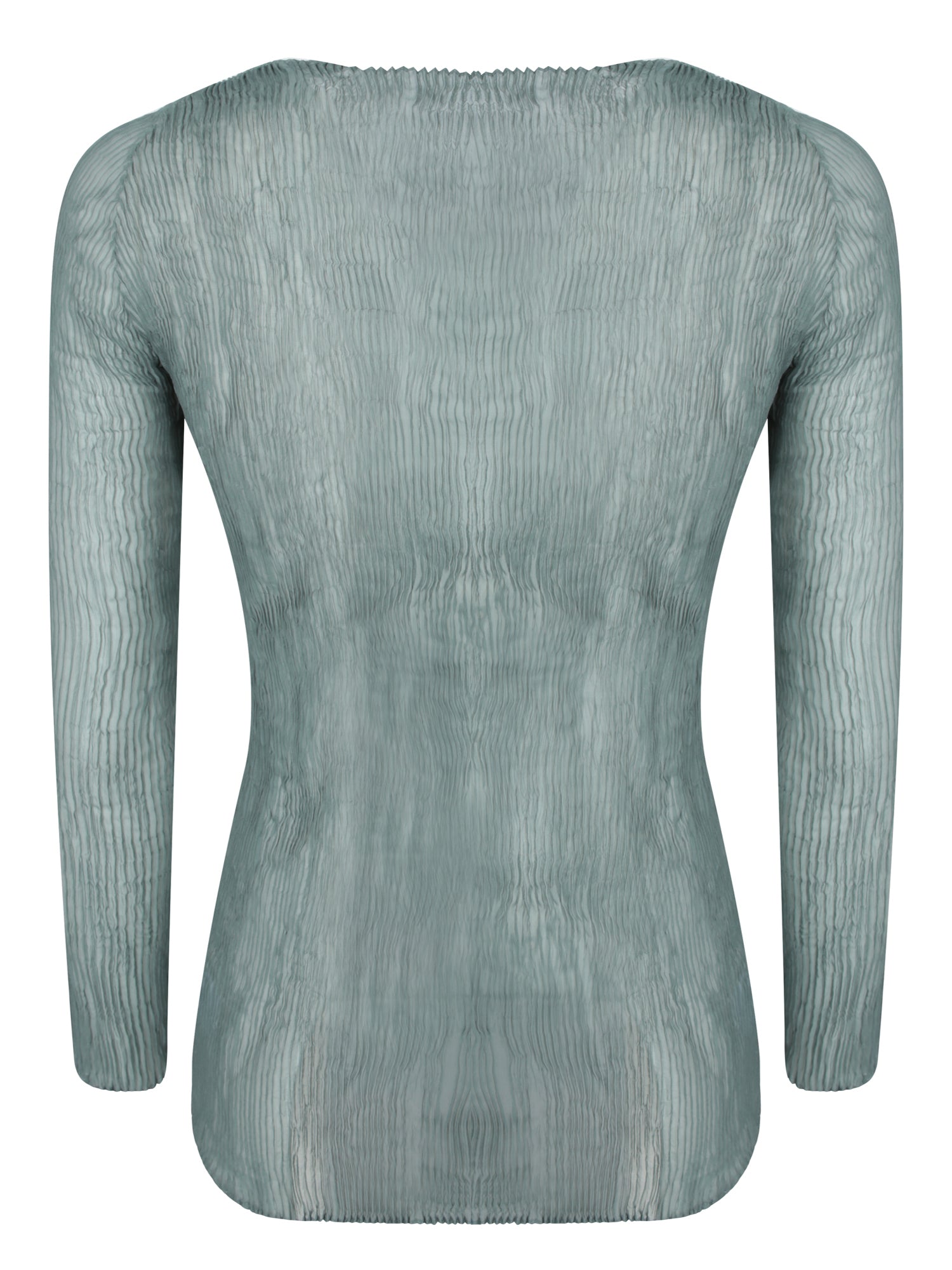 This elegant Issey Miyake top captures the essence of contemporary design with its pleated chiffon fabric that plays with light and texture. The silhouette is defined by an eye-catching V-neck and an innovative twist detail that adds a unique touch of sop