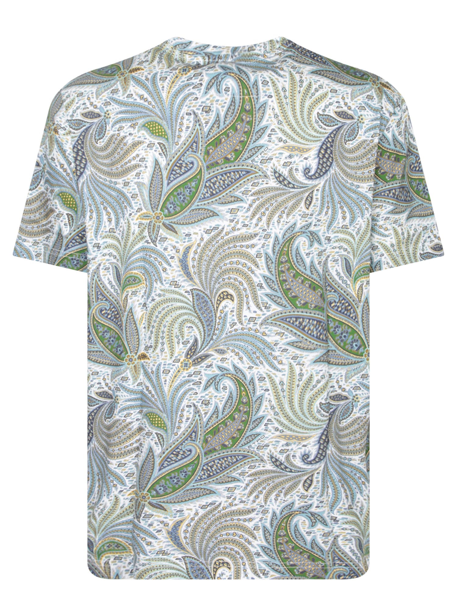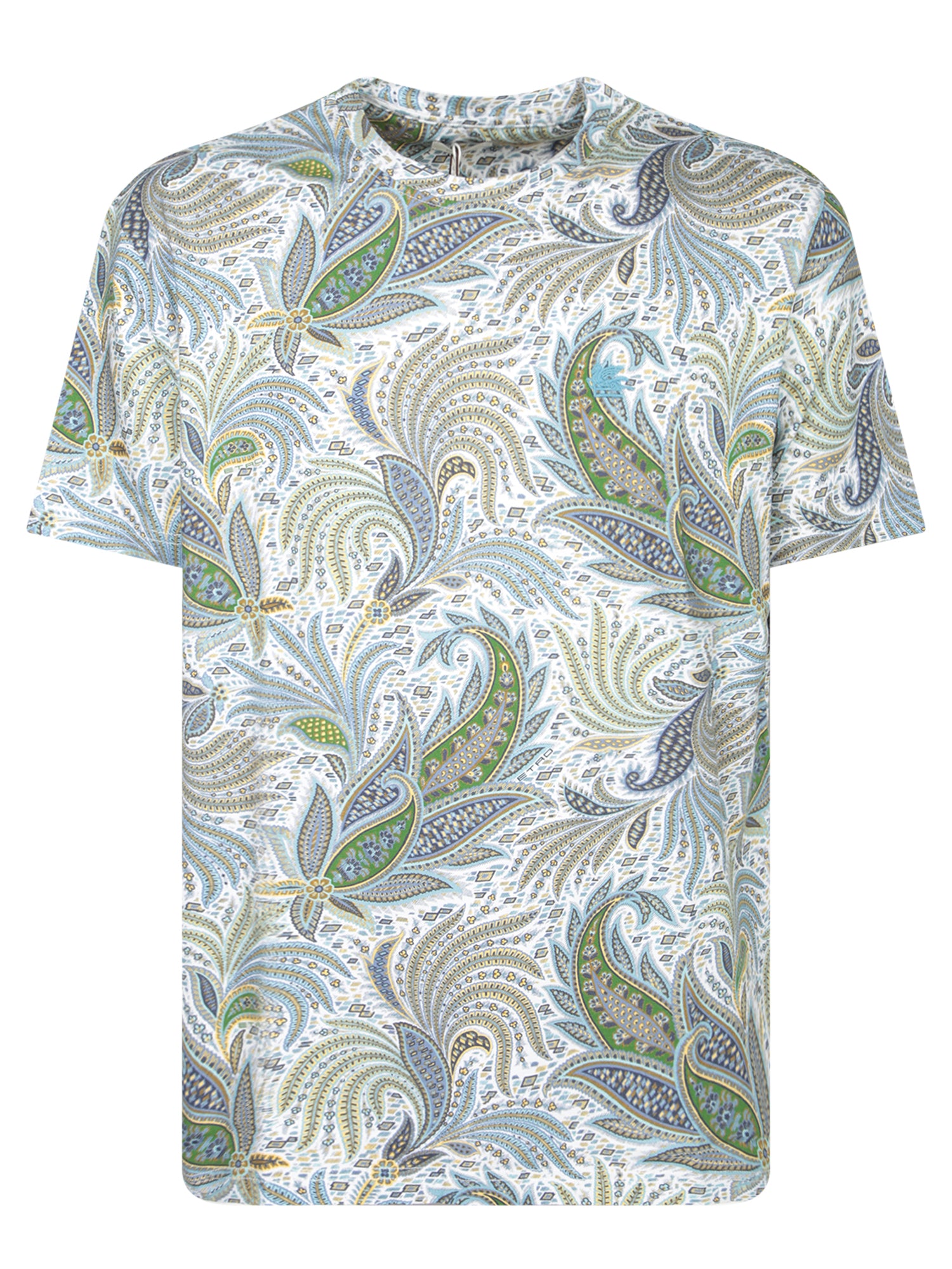 This ETRO T-shirt features an eye-catching design with a vibrant paisley print that stands out for its mix of bright colors on a light base. Ideal for a distinguished and refined summer look.