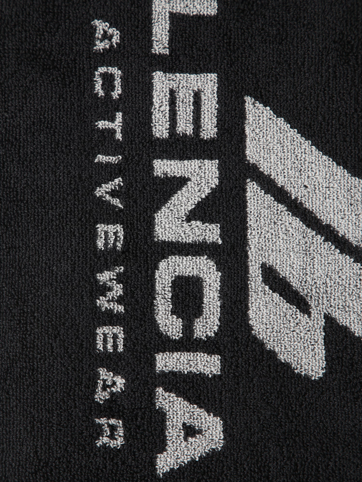 Black terry towel. Integrated white Balenciaga Active Wear logo.