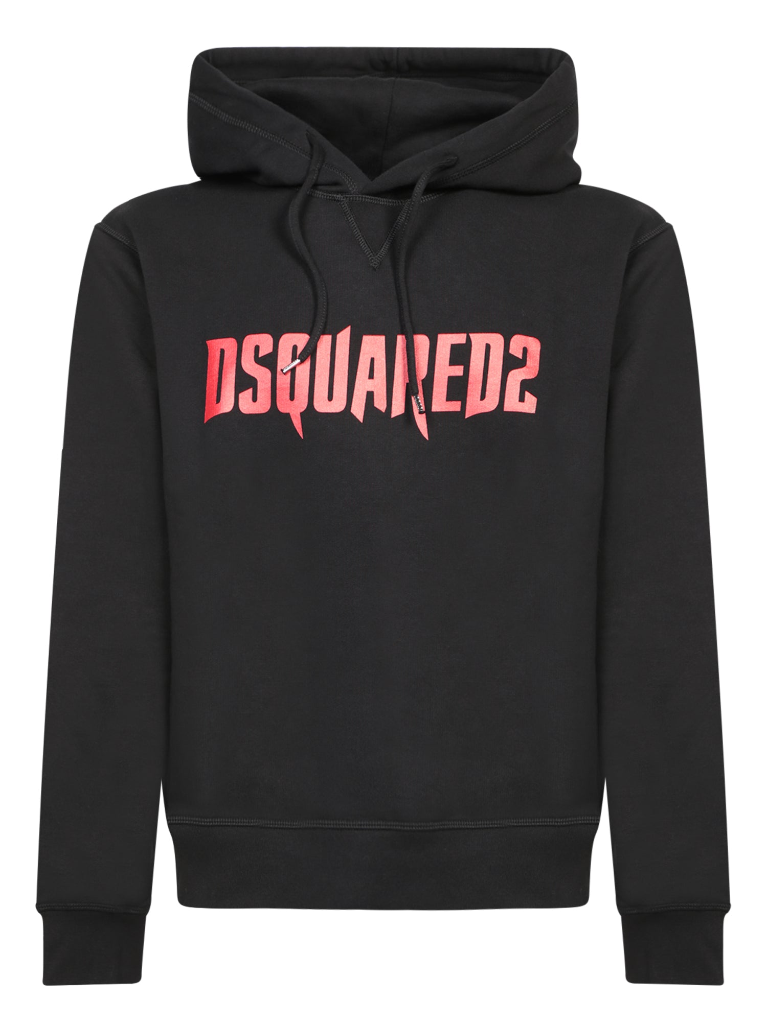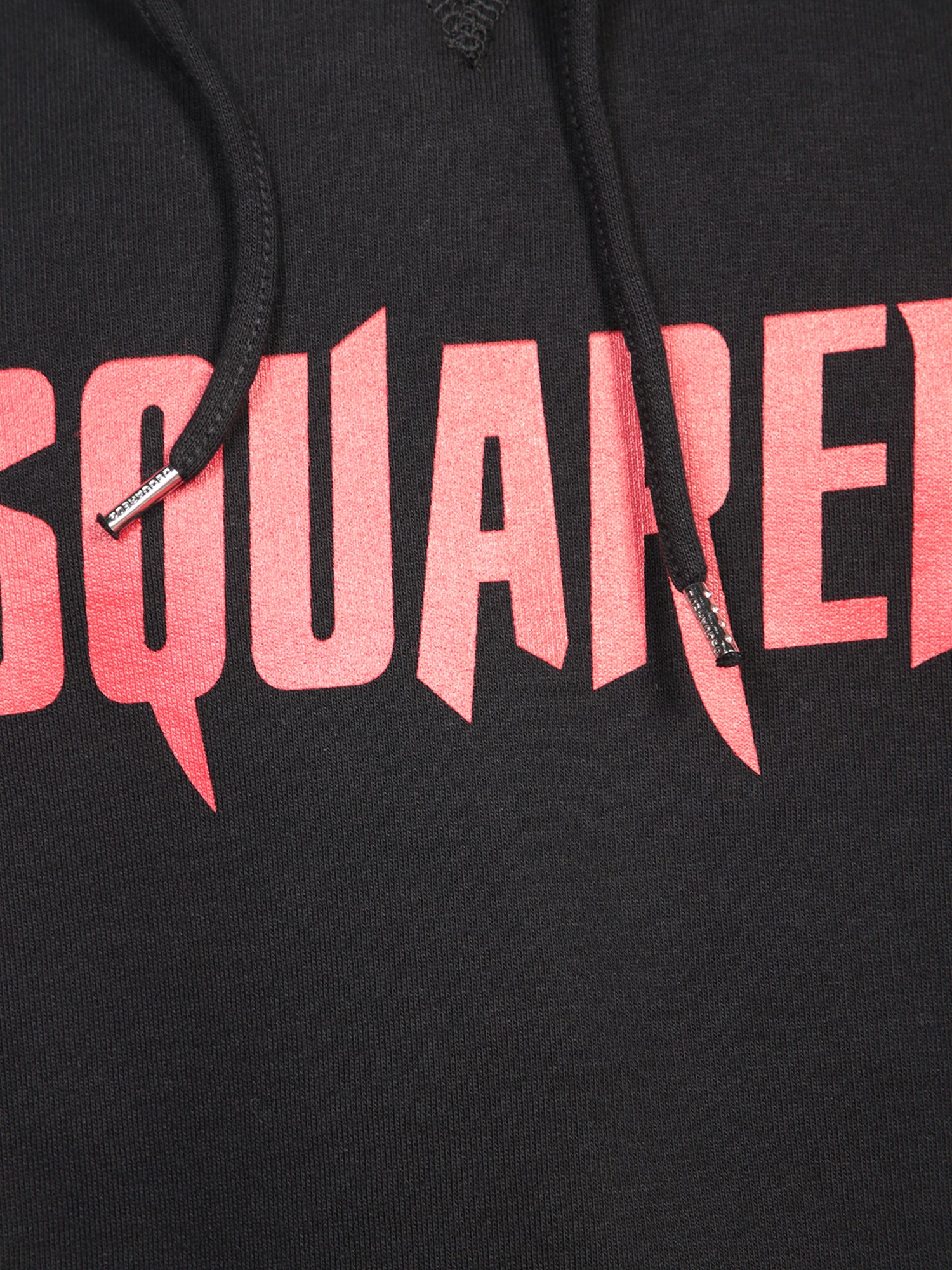 Adjustable hood sweatshirt. Dsquared2 logo in red. Ribbed hem and cuffs.