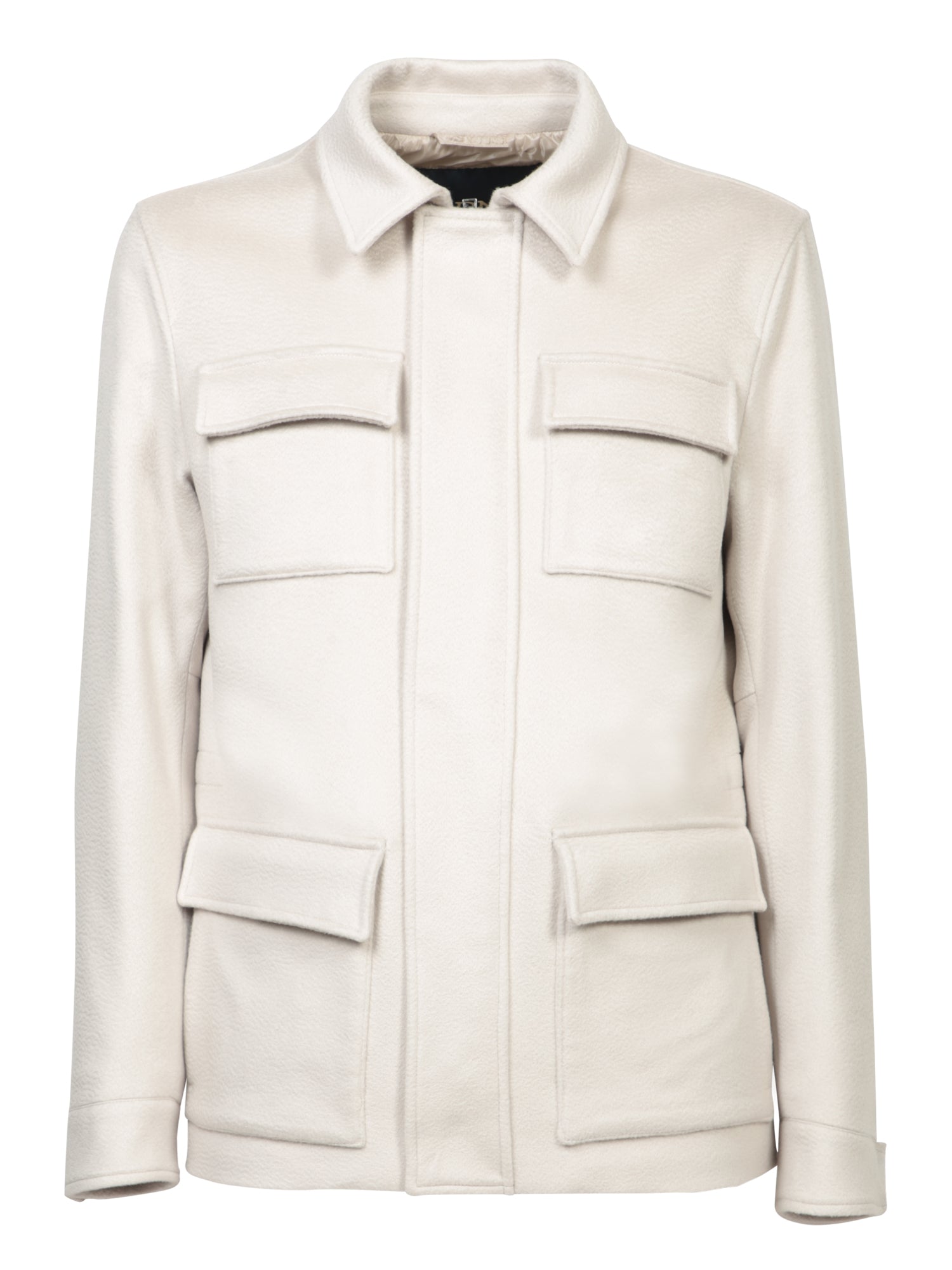This elegant ivory cashmere jacket by Herno provides a perfect balance of luxury and functionality. Featuring a clean design with flap pockets and a refined silhouette, it is ideal for a sophisticated look on any occasion.