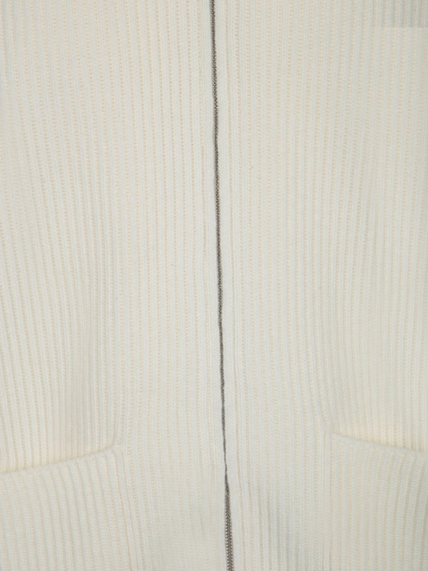 Ivory Wool and Cashmere Hooded Zip-up Sweater