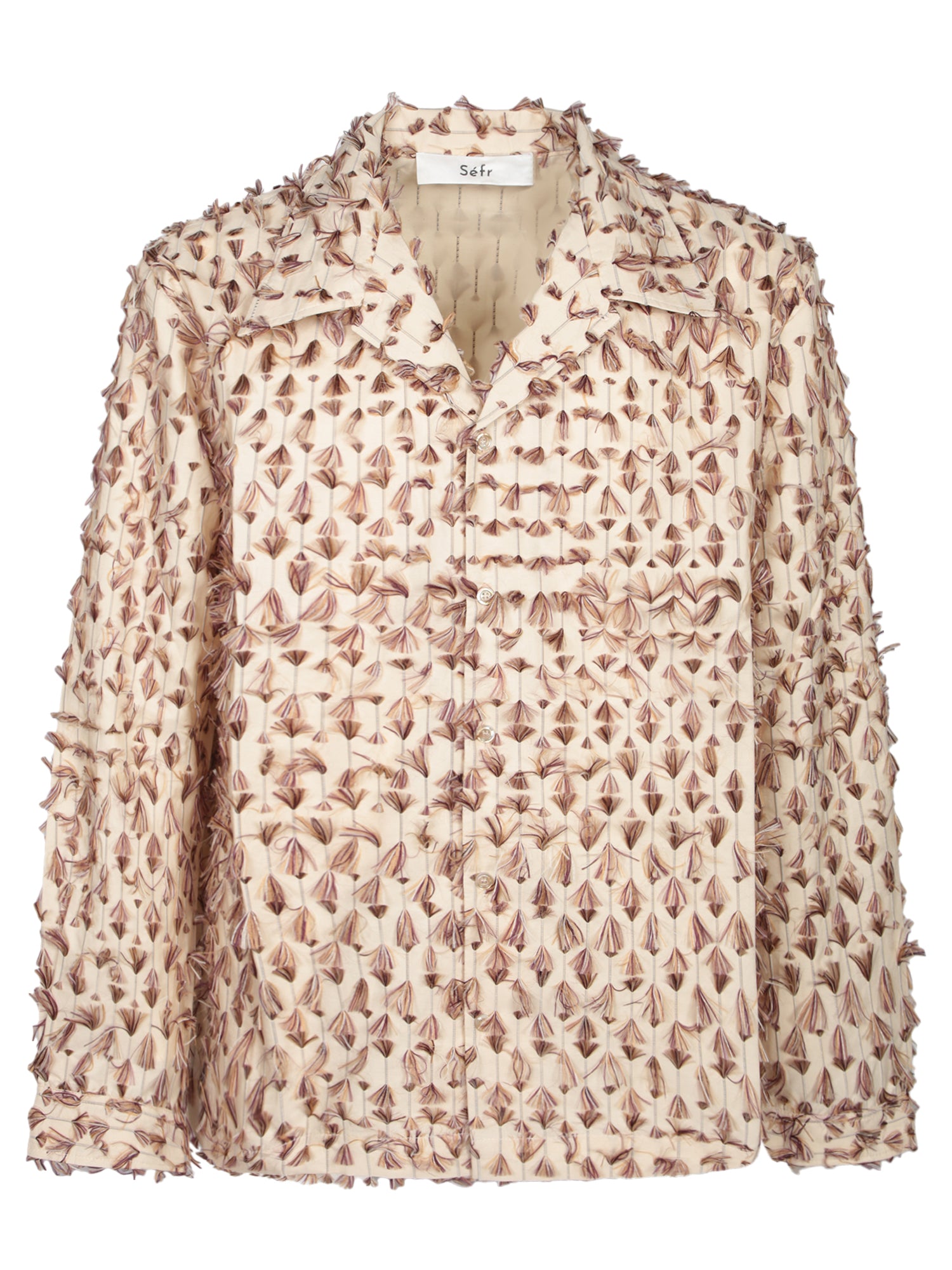 Sefr's 'Jagou' shirt, crafted from lightweight and breathable cotton poplin, features an original decorative pattern for a distinctive flair. Perfect for casual or smart-casual pairings.