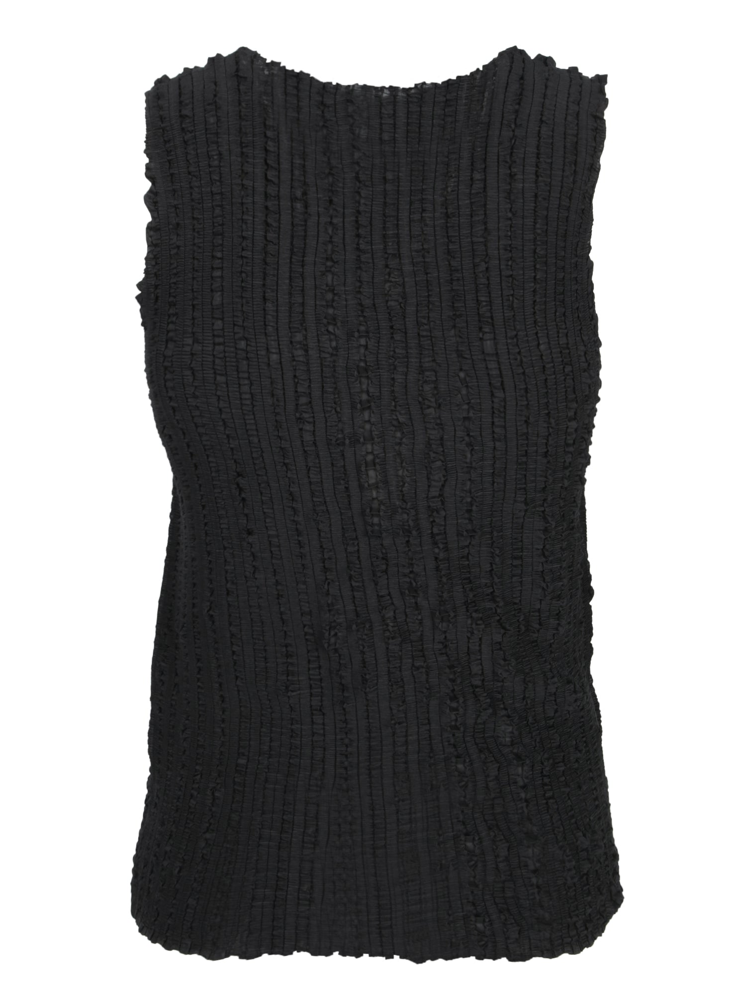 Sleeveless top. Pleated fabric. Black color.
