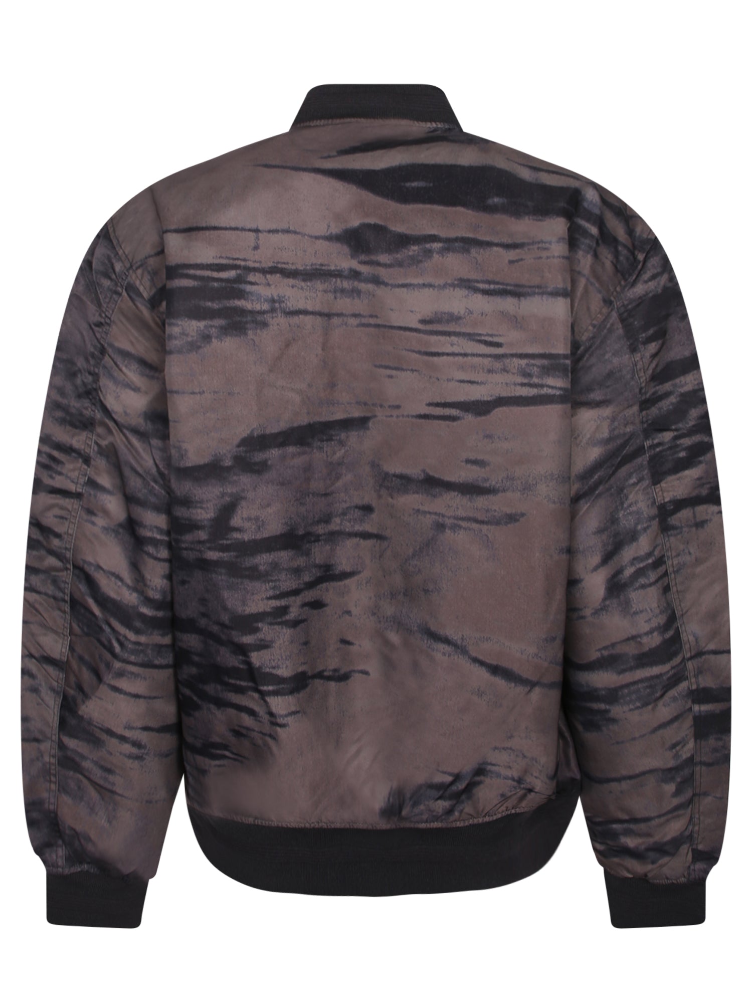 Bomber with all-over print. Front zip closure. Ribbed collar, cuffs, and hem.