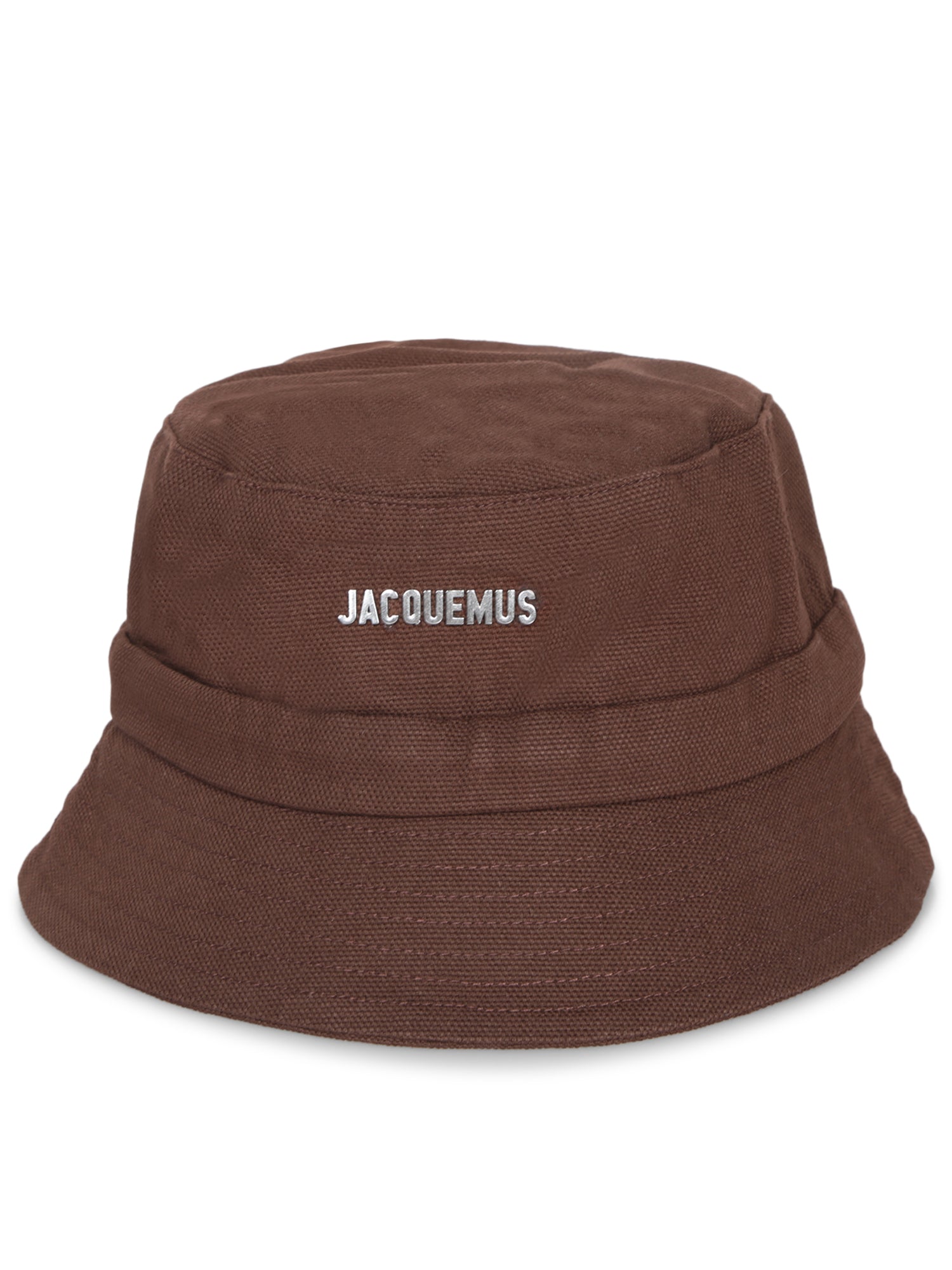 Sturdy canvas fabric. Frontal white Jacquemus logo. Wide-brim design.