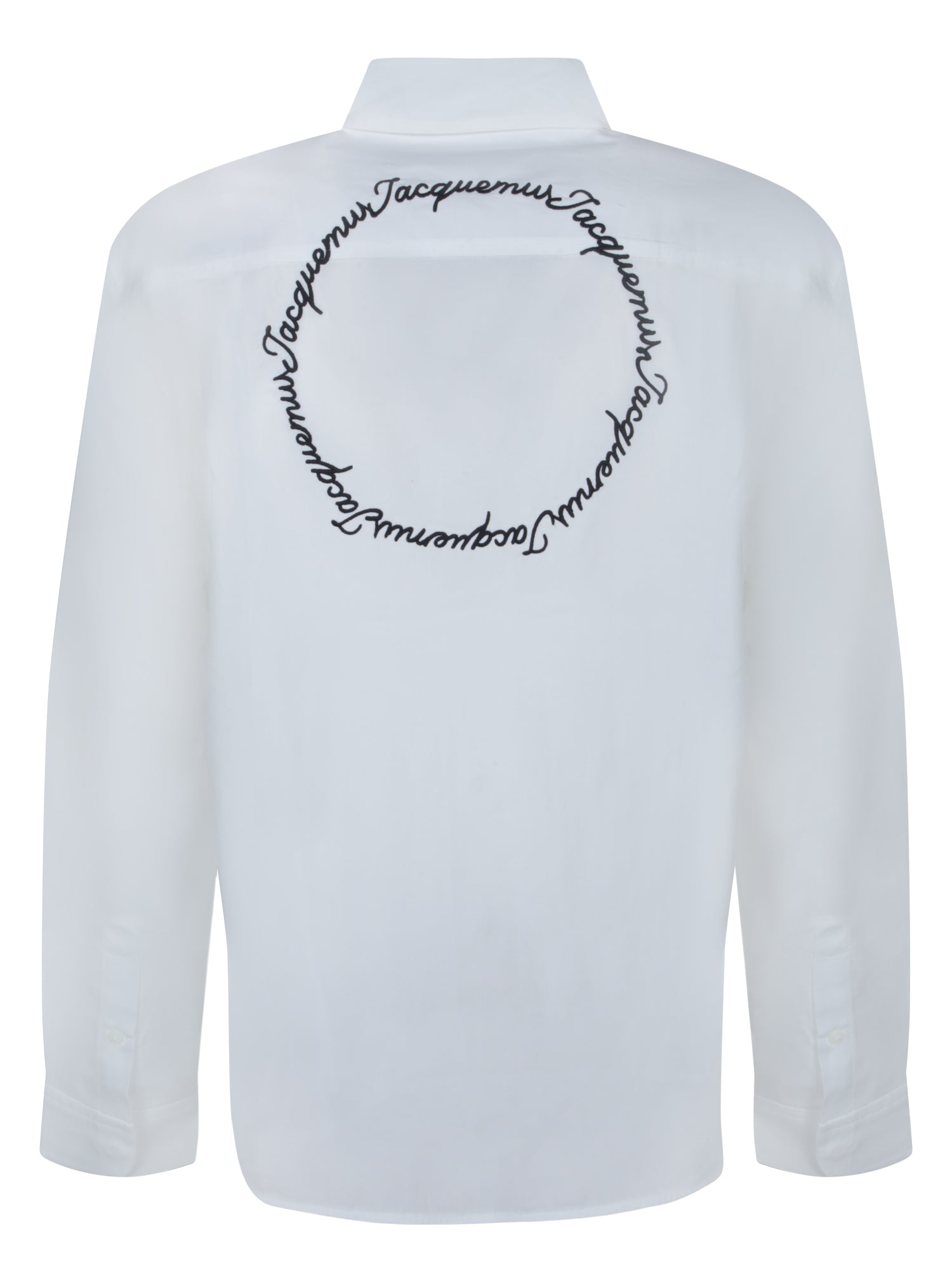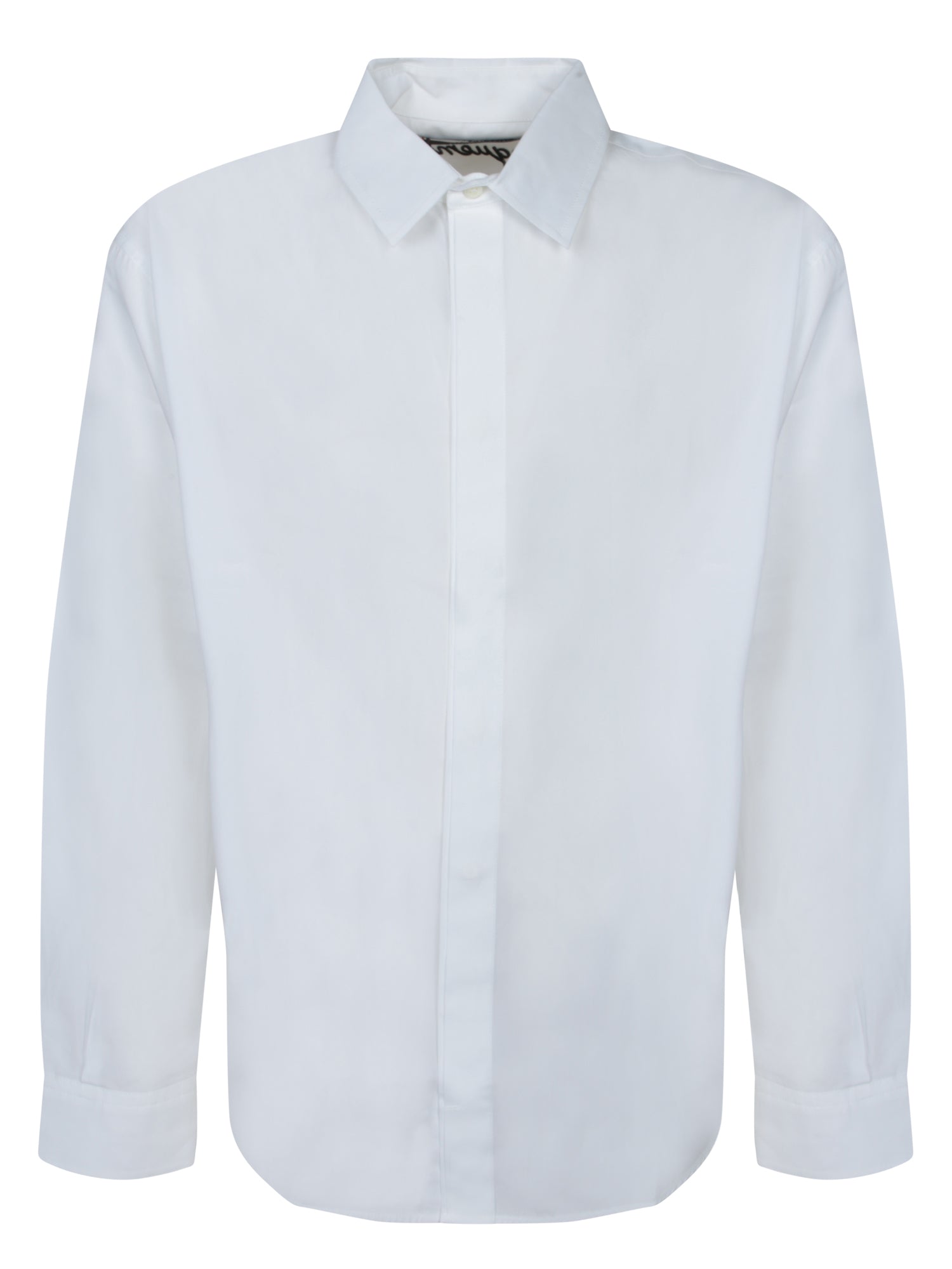 Lightweight fabric shirt, classic collar, concealed front button placket, long sleeves with buttoned cuffs.