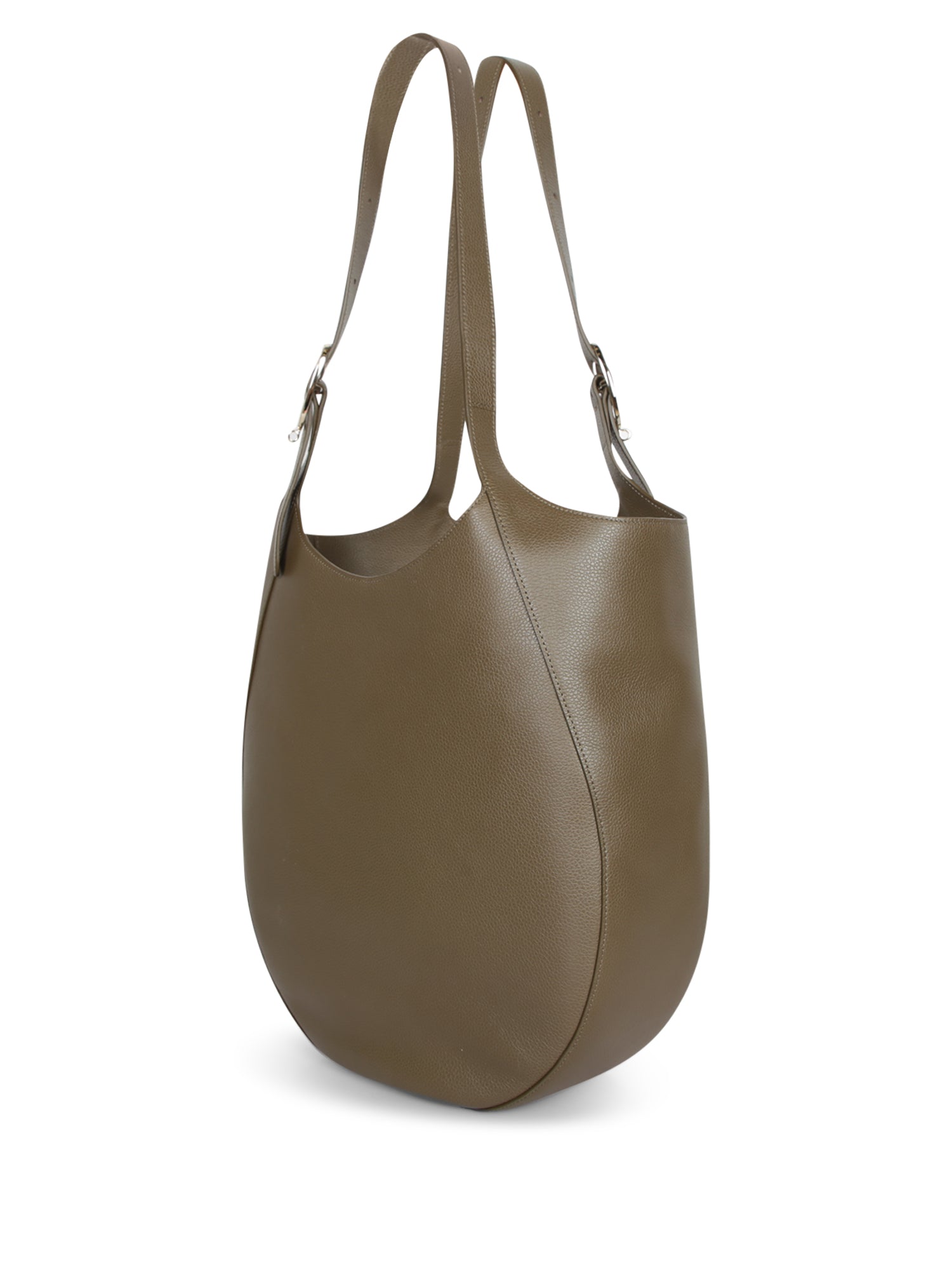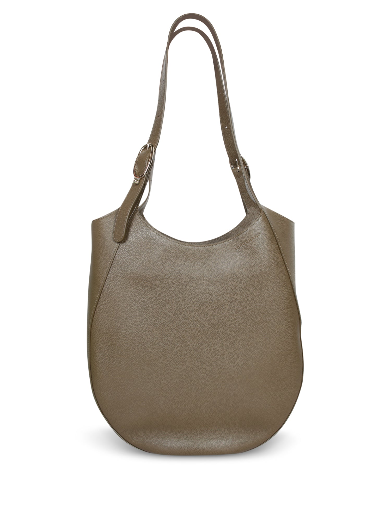 Fine grain leather shoulder bag. Zip closure. Adjustable strap.