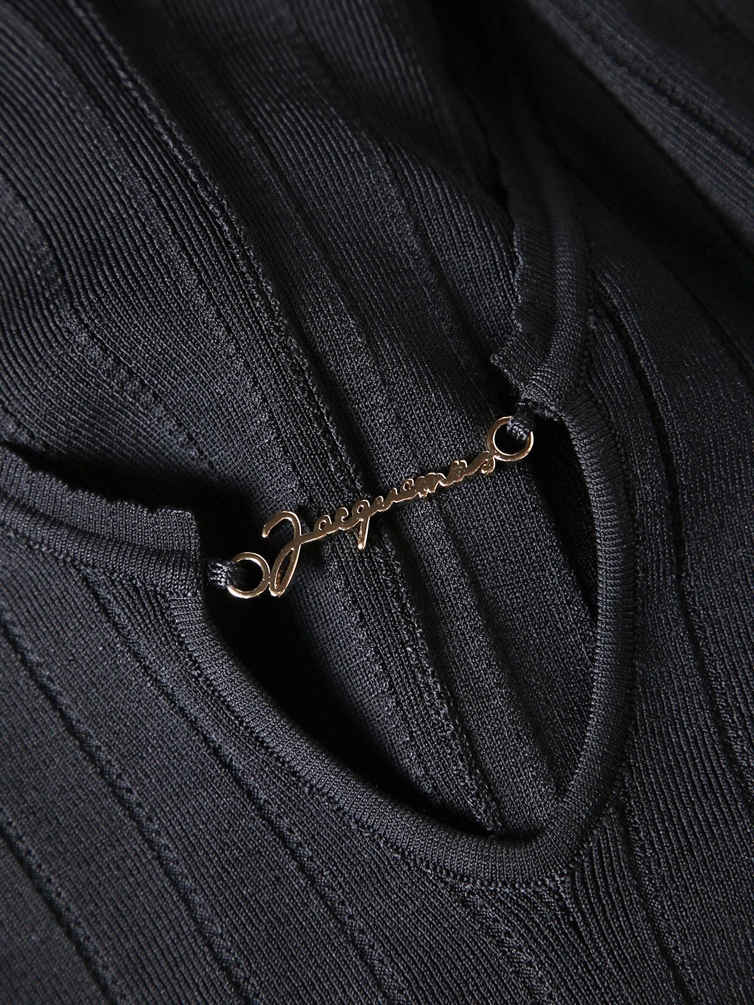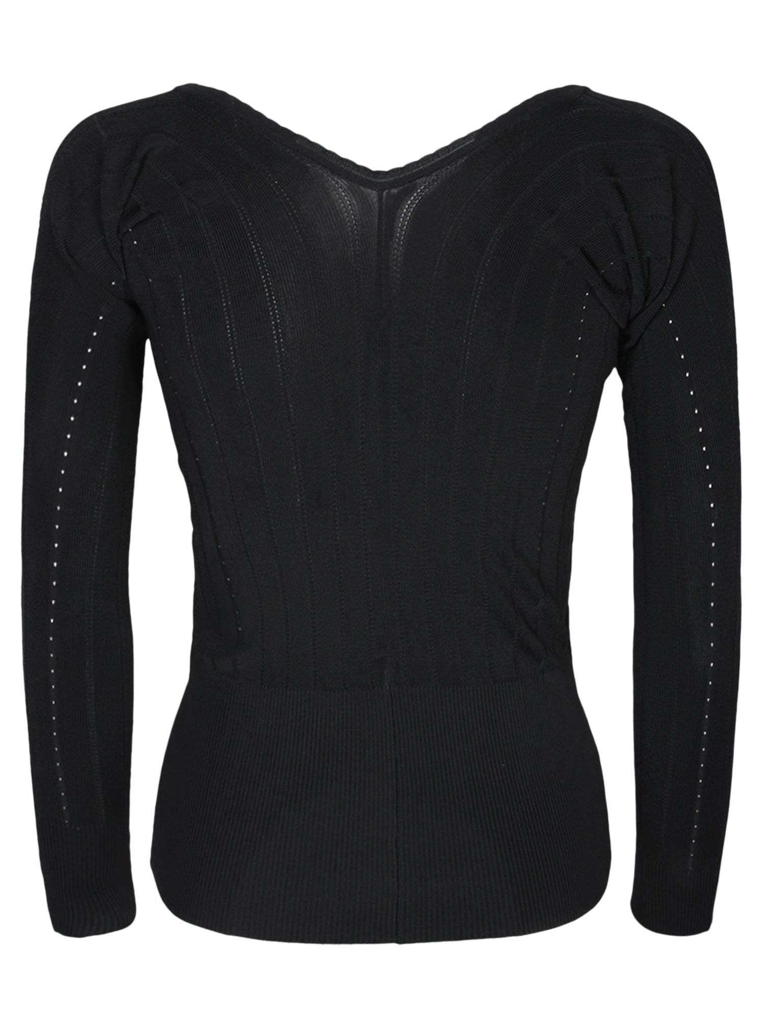 Long sleeves. Boat neckline. Cut-out gold-tone charm detail to the front.