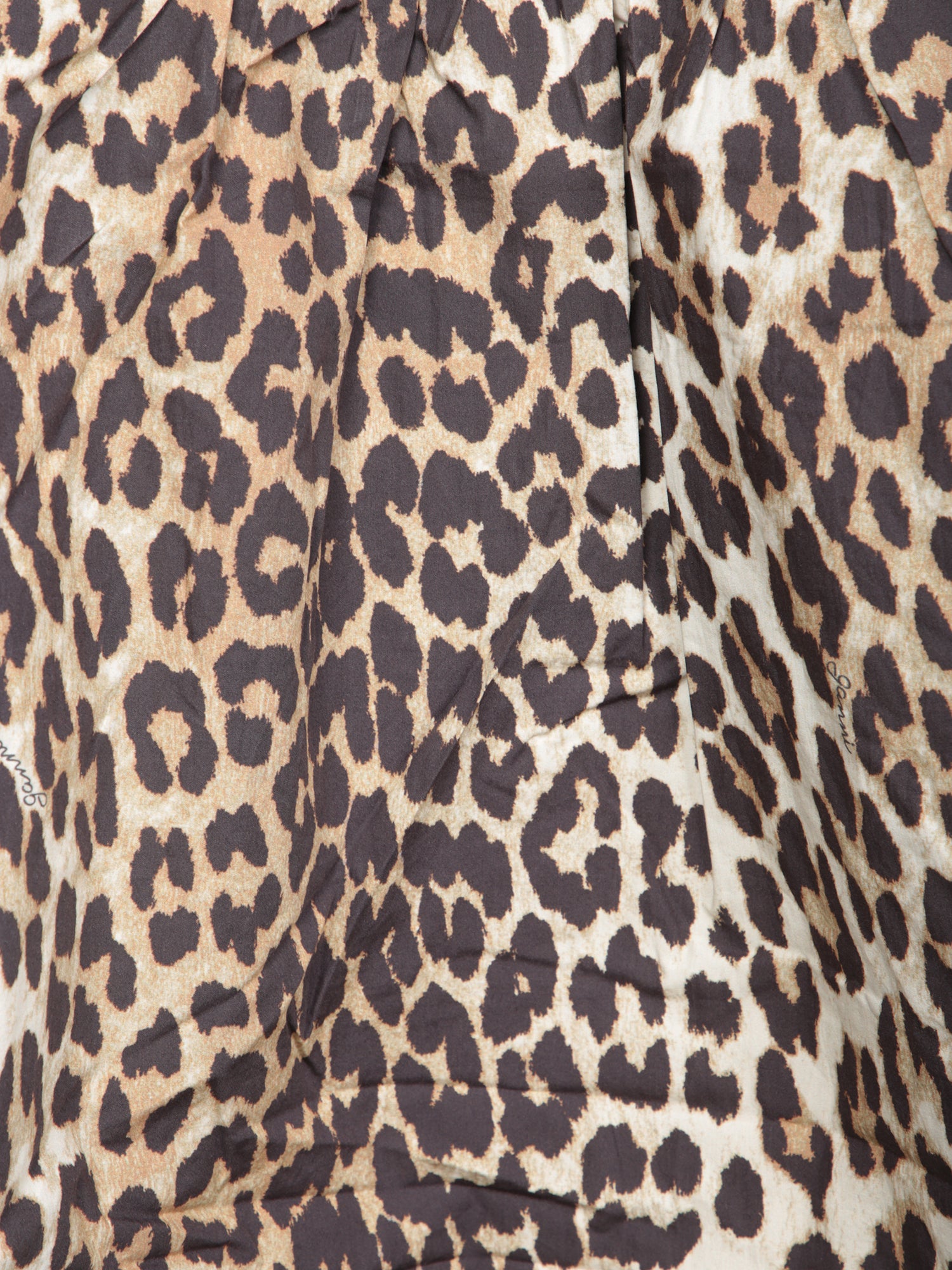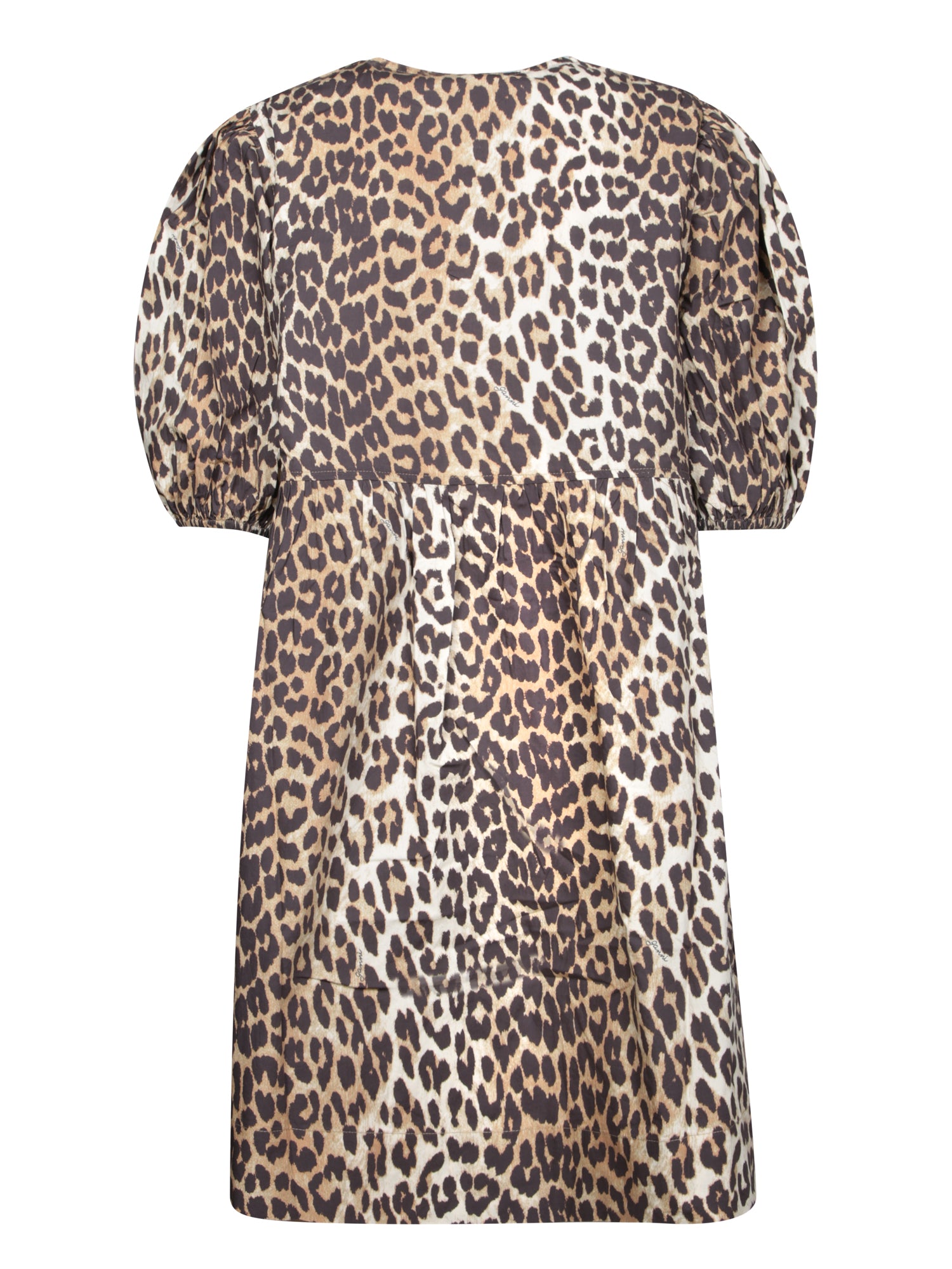 Elevate your wardrobe with this GANNI short dress, featuring a bold leopard print and a relaxed silhouette that gracefully enhances femininity.