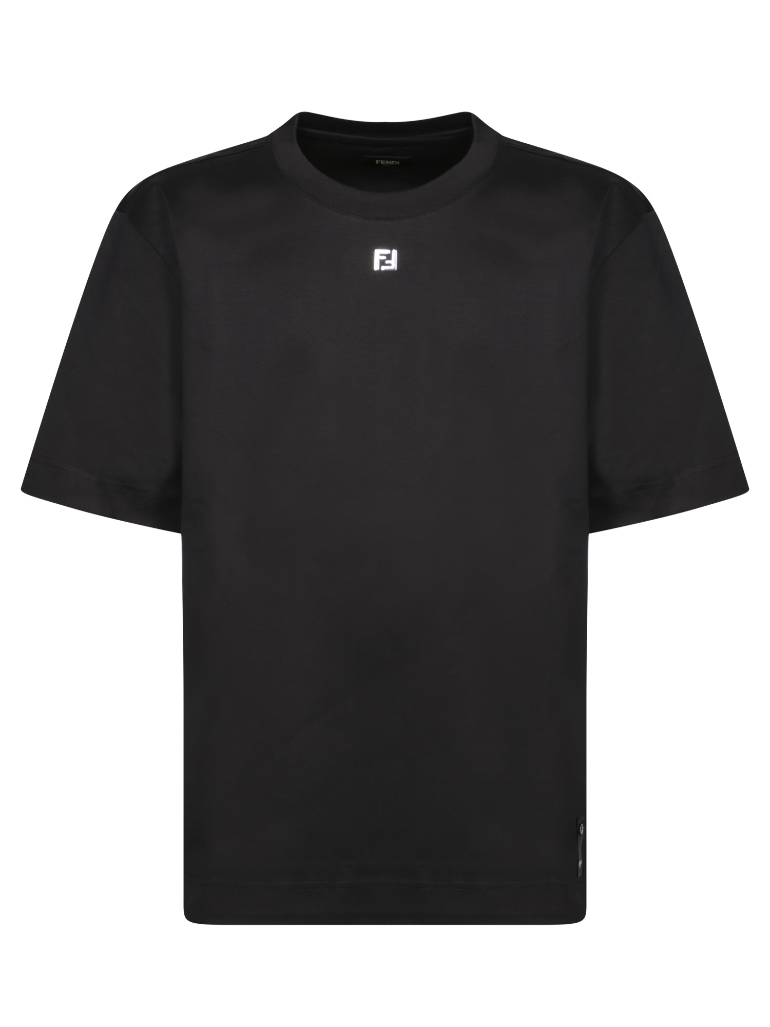 Short sleeves, front Fendi logo, black cotton crew neck.