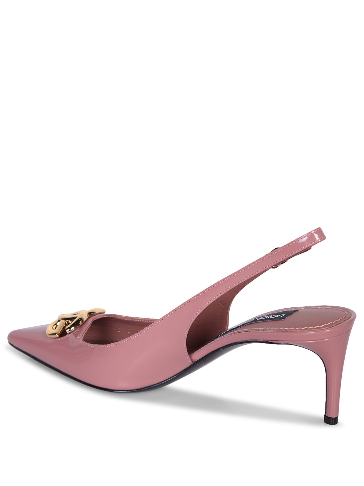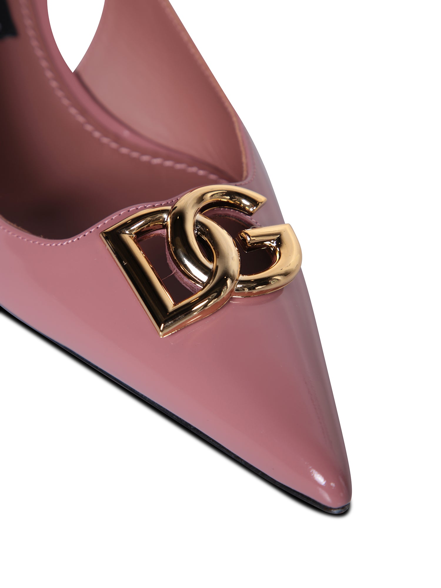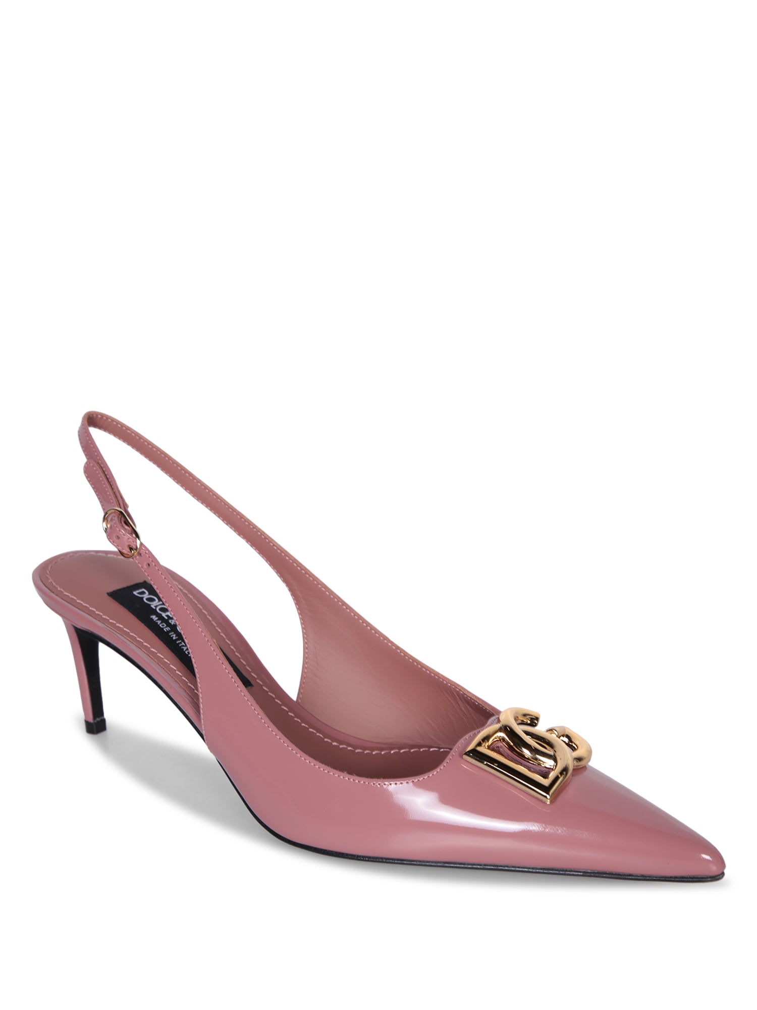Adjustable ankle strap. Gold-tone logo plaque. Heel height: 6 cm