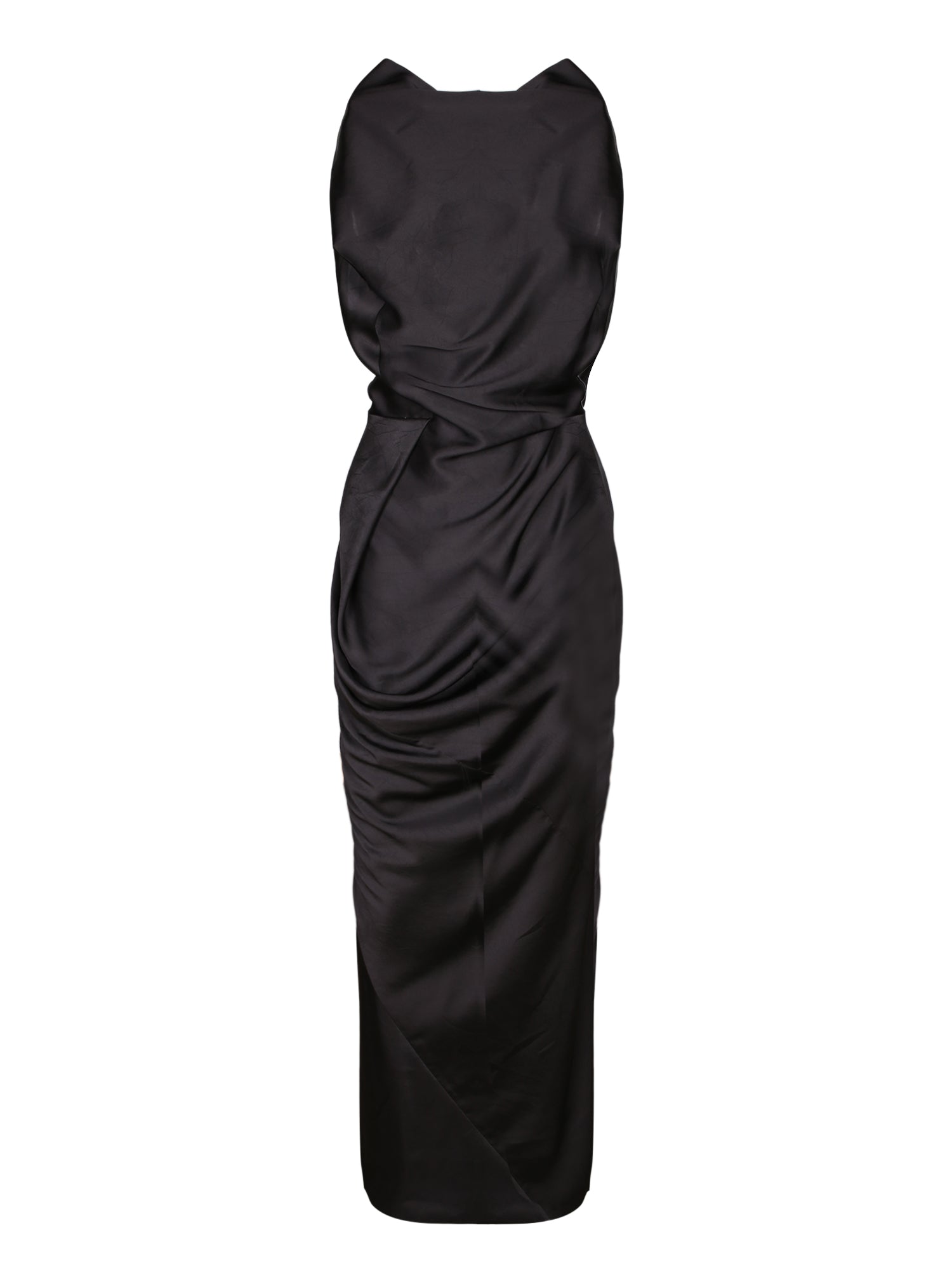 Sleeveless dress. Fitted cut with draping. Concealed side closure.