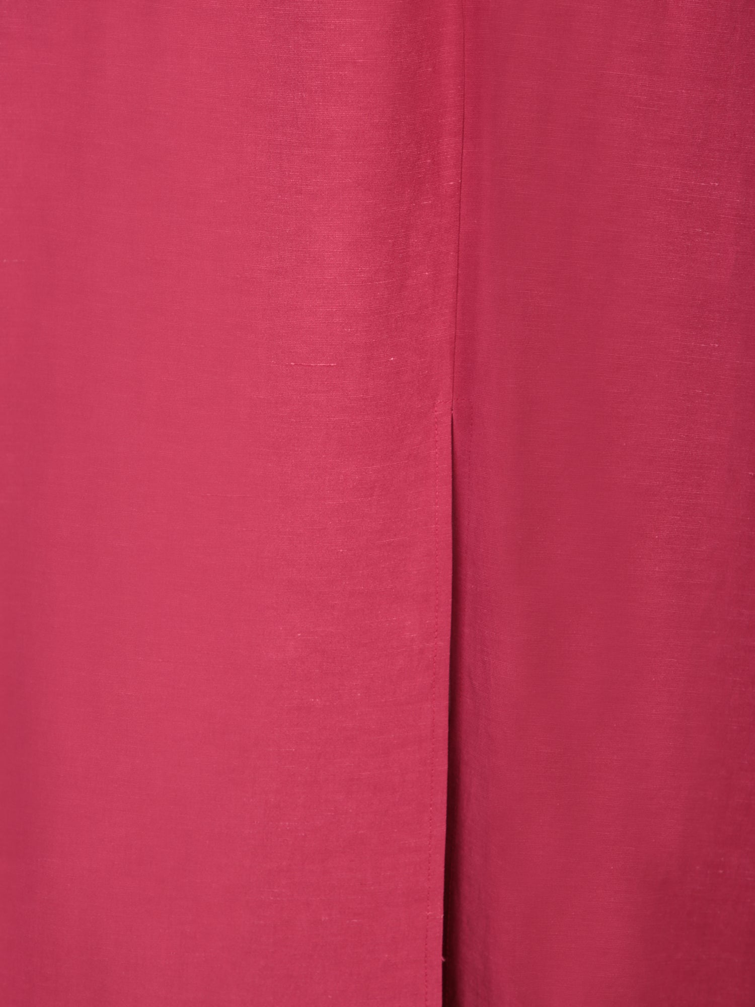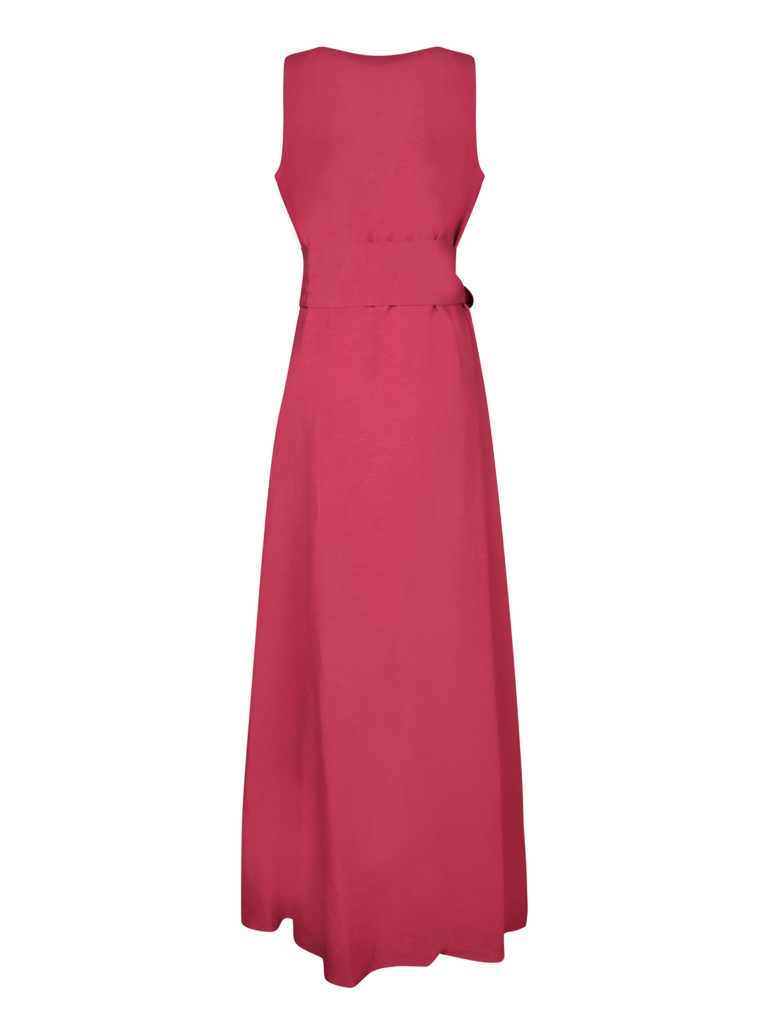 The Blanca Vita linen and viscose dress embodies timeless elegance with its flowing silhouette and Indian Red hue. The V-neckline and belted waist detail accentuate a sophisticated femininity.