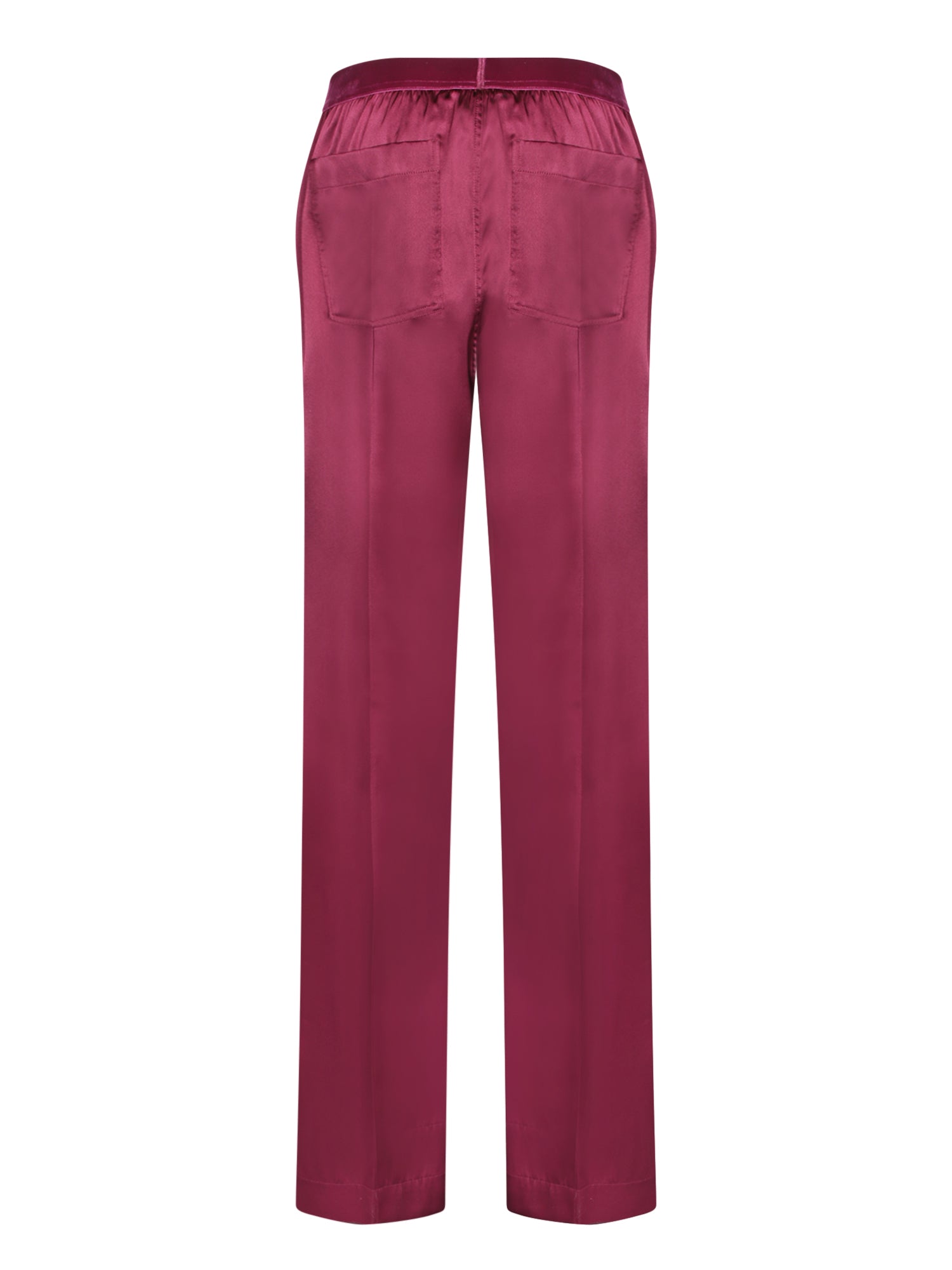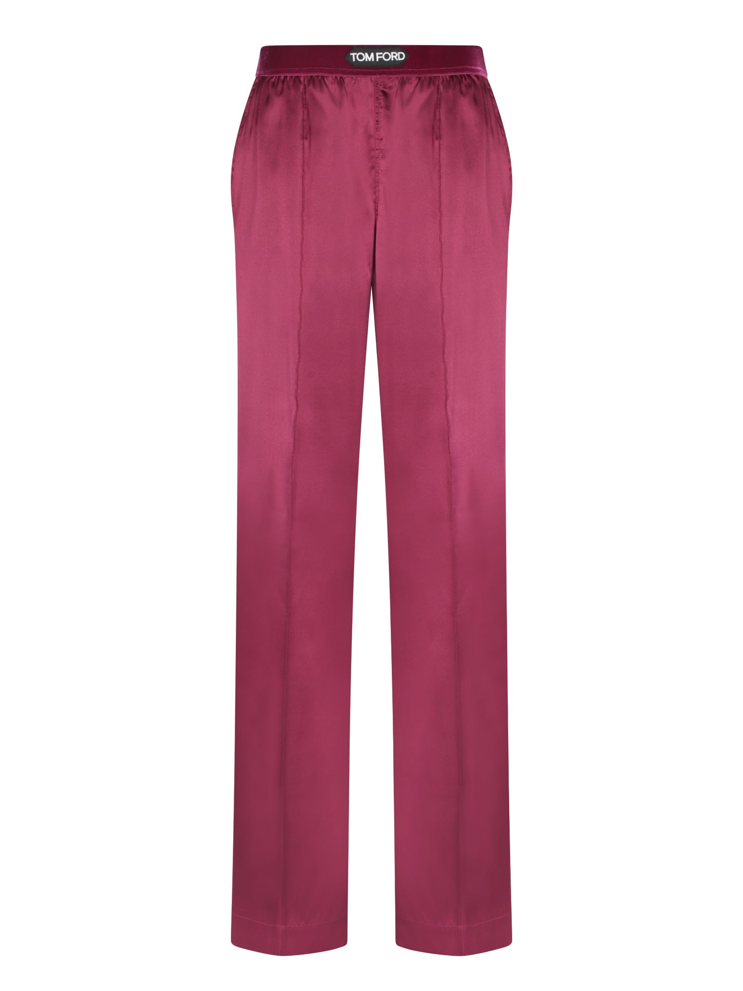 Exclusive TOM FORD magenta silk pajama pants featuring a comfortable elastic waistband with an embossed logo, offering a relaxed fit that enhances effortless elegance.