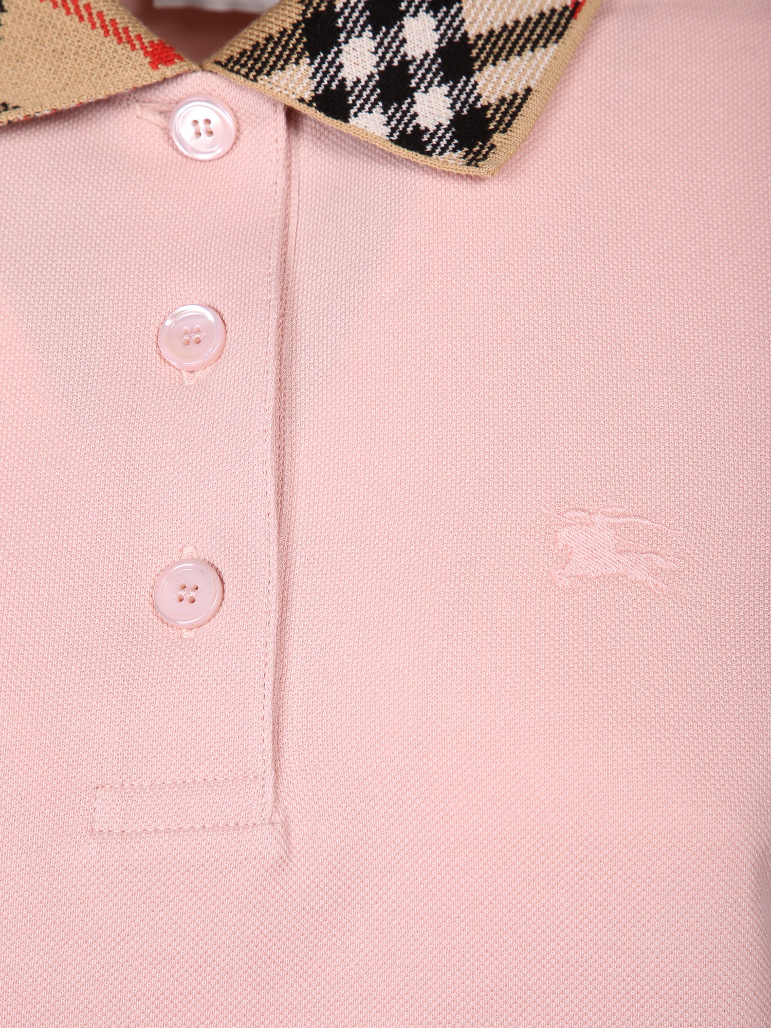Dress in cotton piqué. Collar in iconic check pattern. Button closure.