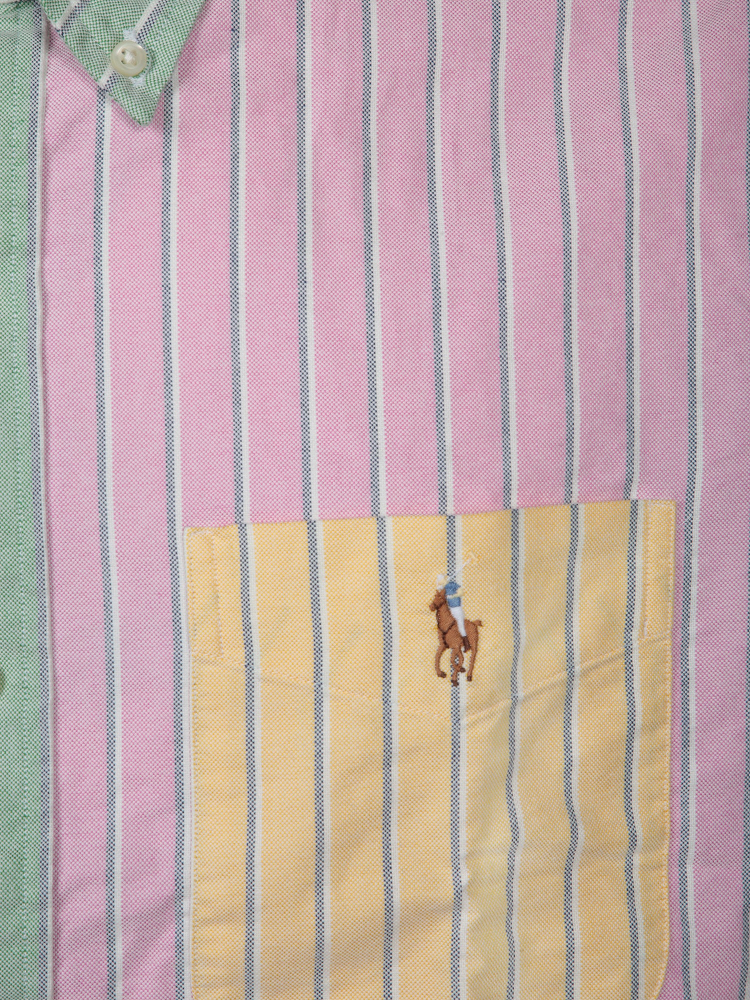 Long sleeve shirt. Button-down collar. Button front closure. Chest patch pocket with embroidered logo.
