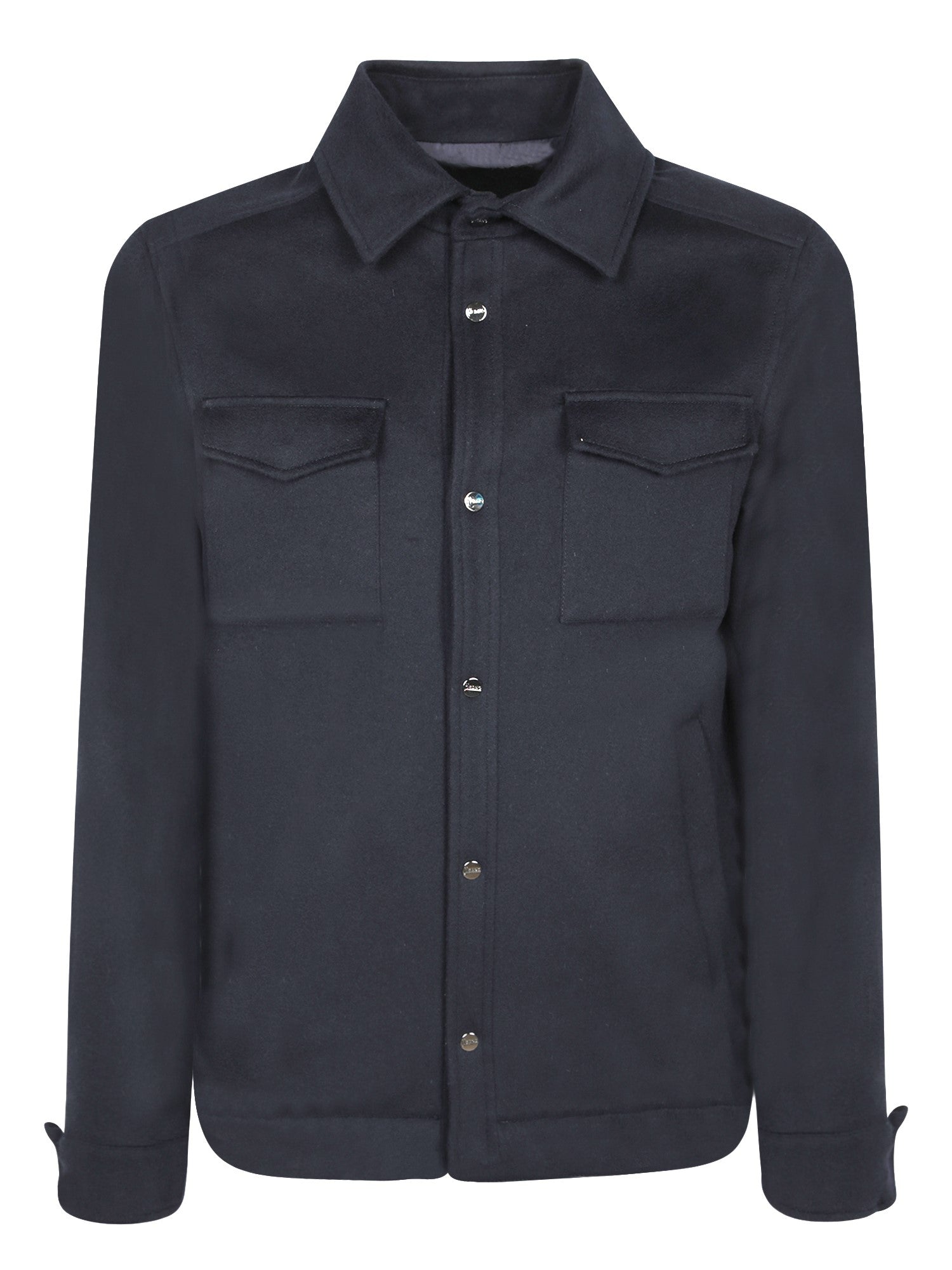 Cashmere shirt with button closure, long sleeves, and two chest pockets.