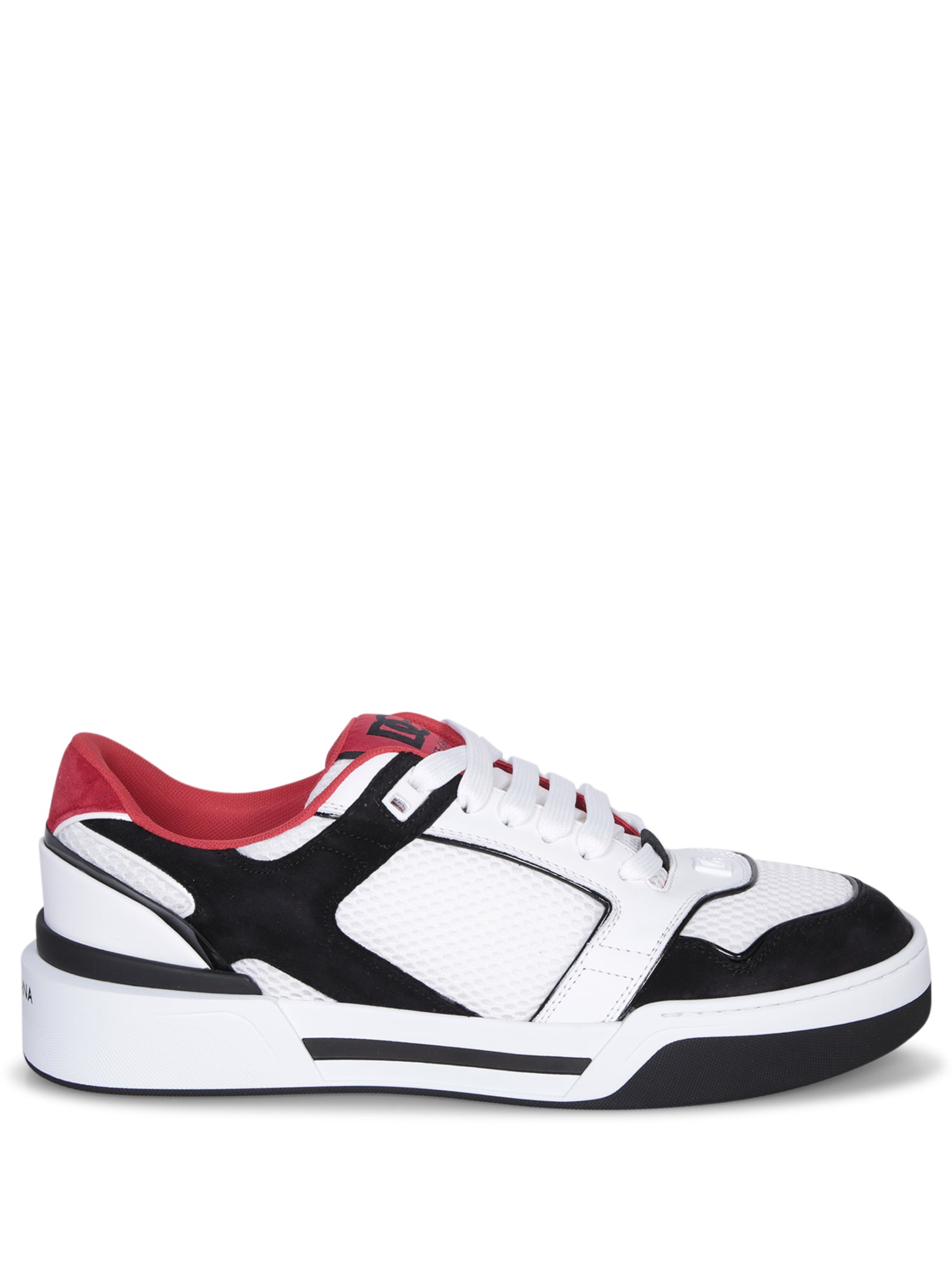 Multi-material. Lace-up fastening. Leather upper. Rubber sole.