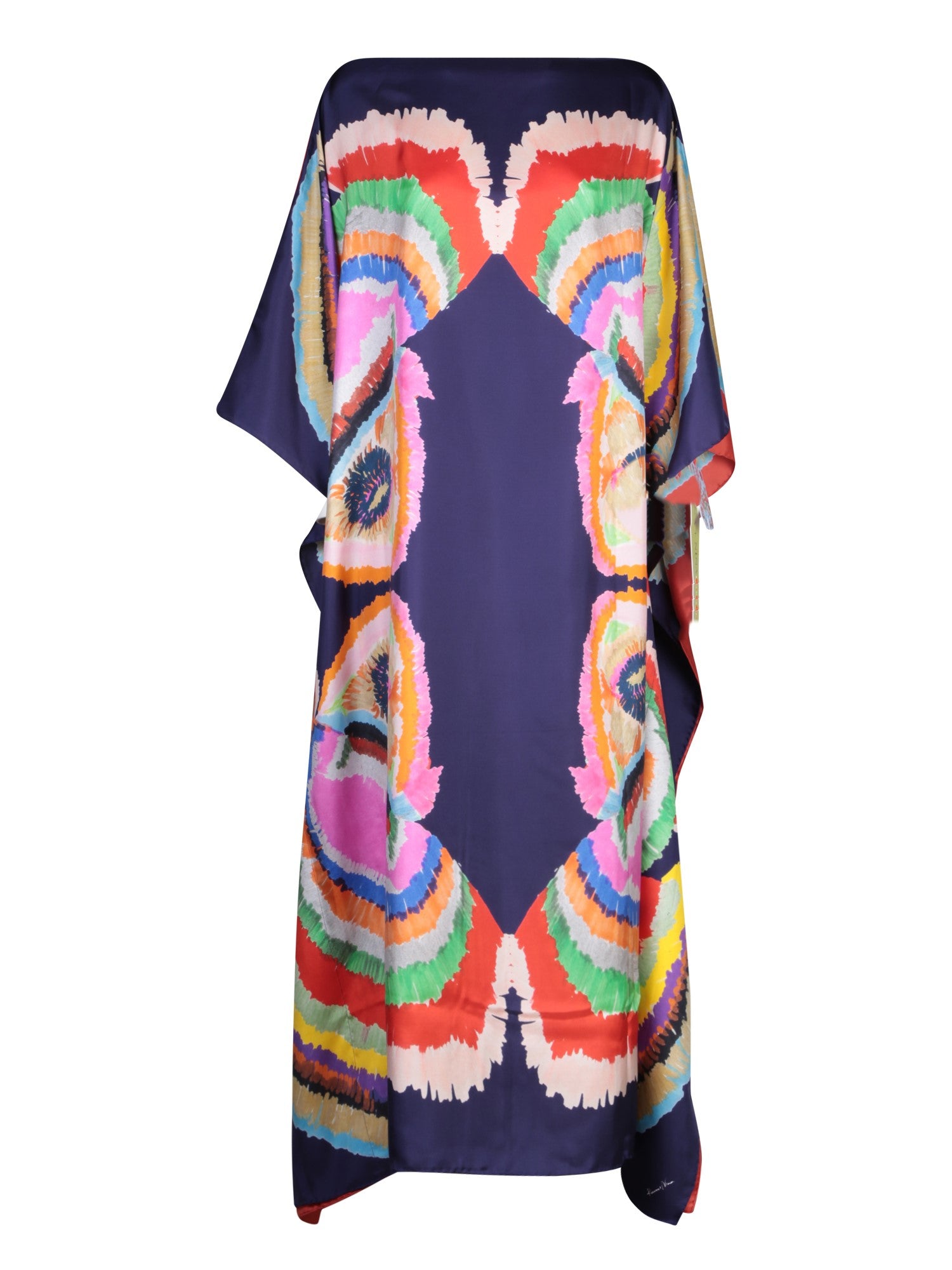 Wide kaftan with vibrant multicolor print. Lightweight and fluid fabric. Kimono sleeves.