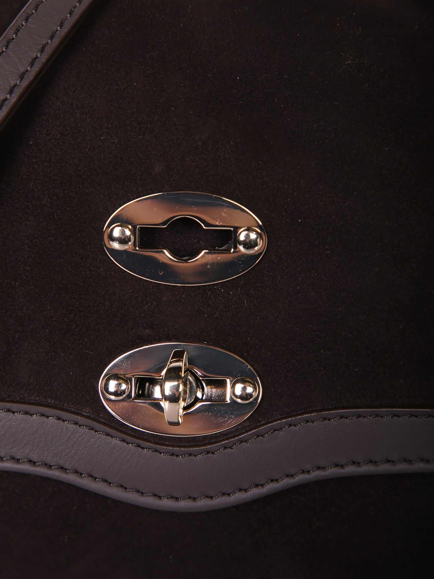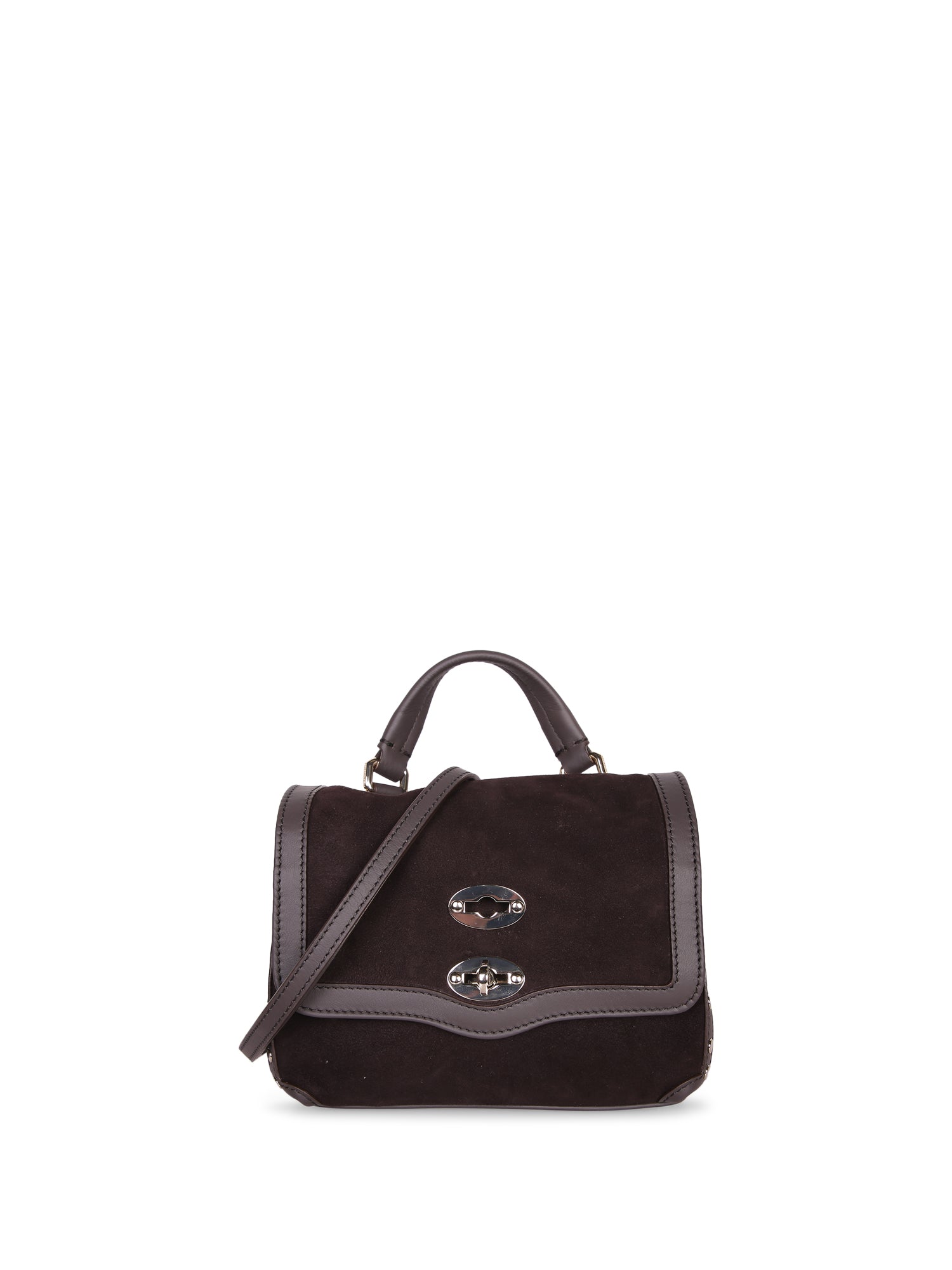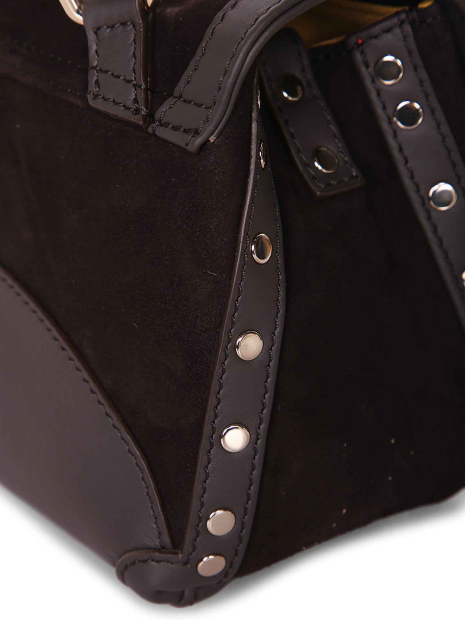 Crafted from high-quality suede. Features an adjustable and removable shoulder strap and iconic snap closure.