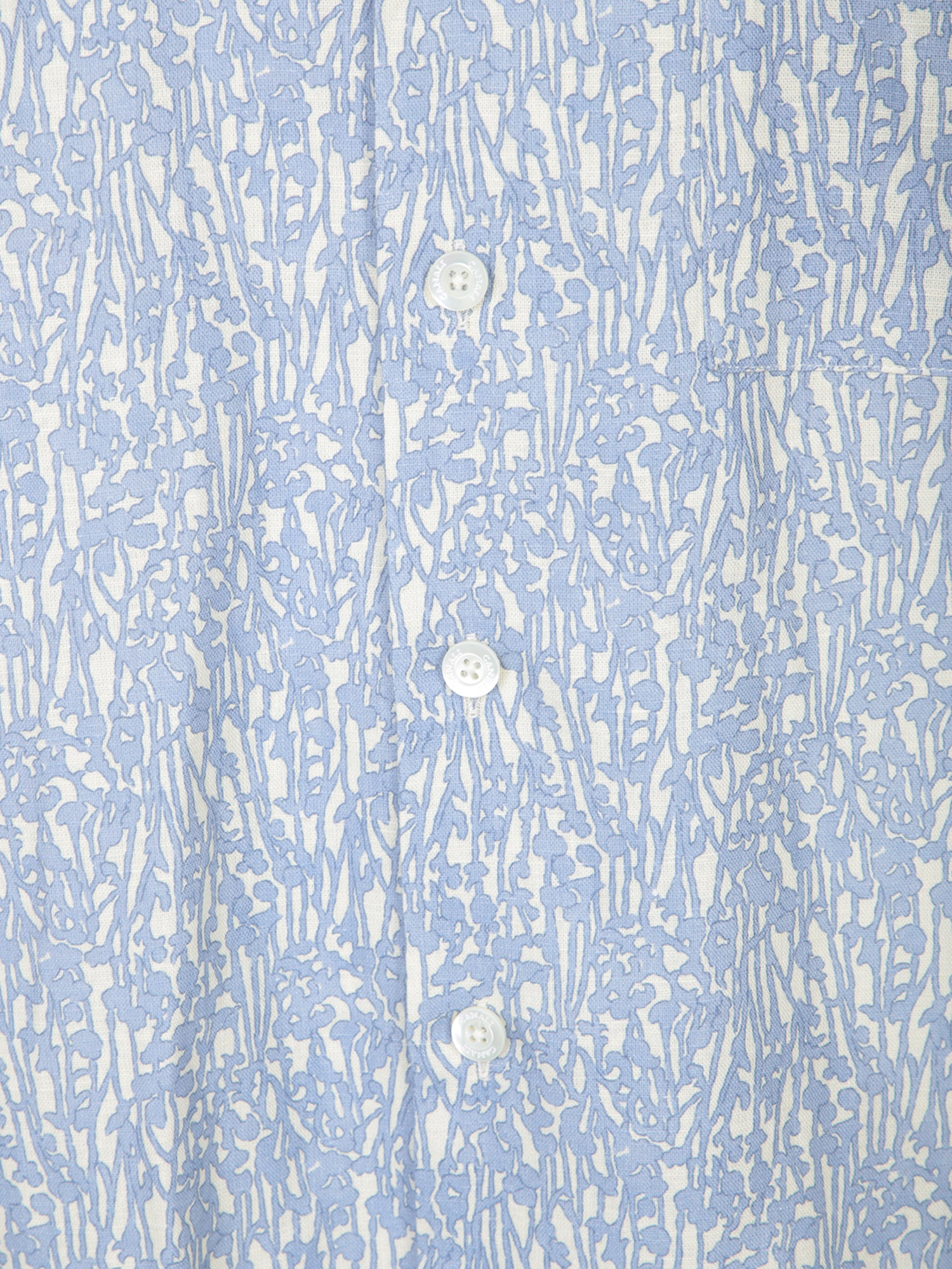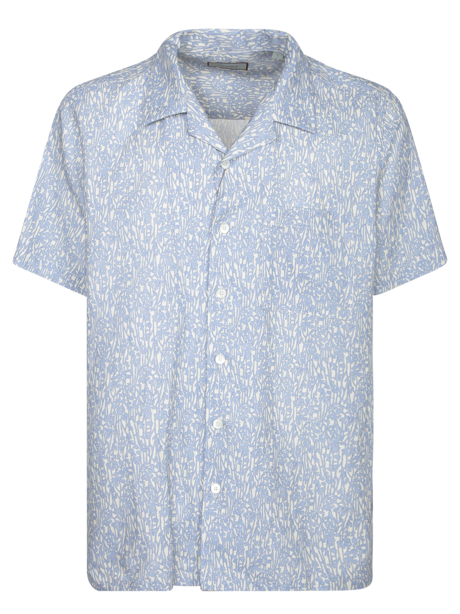 This elegant Canali shirt, crafted from light cotton, features a refined blue botanical motif on a light base, perfect for a sophisticated and contemporary look.