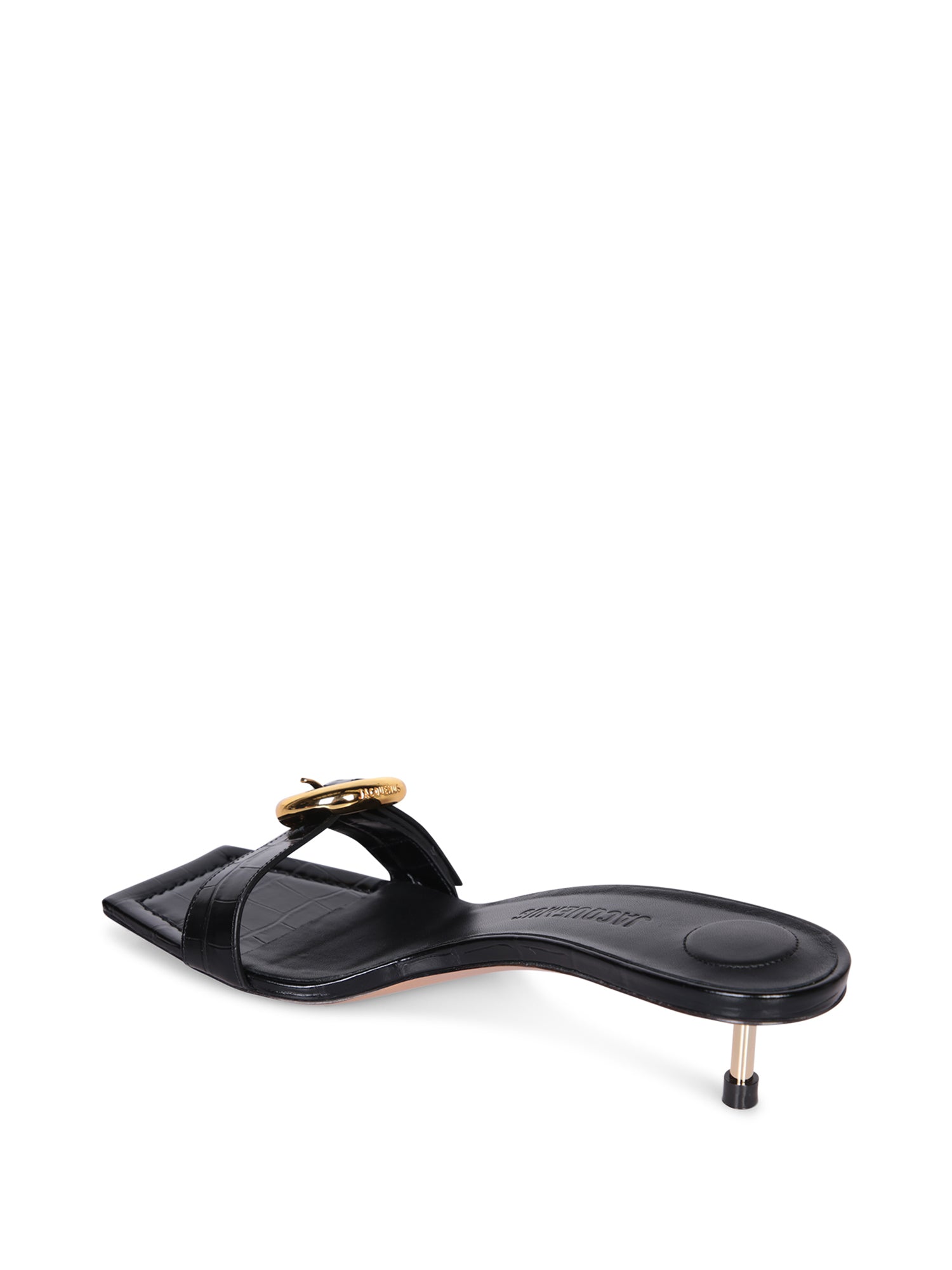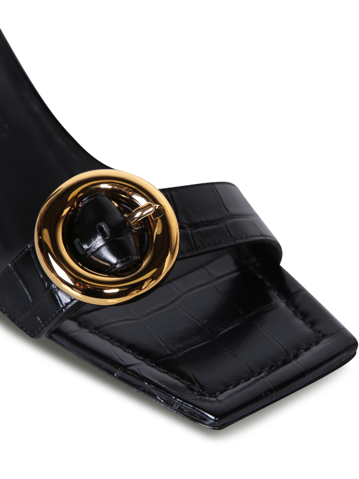 Open toe. Mules model. Gold-tone tone buckle.