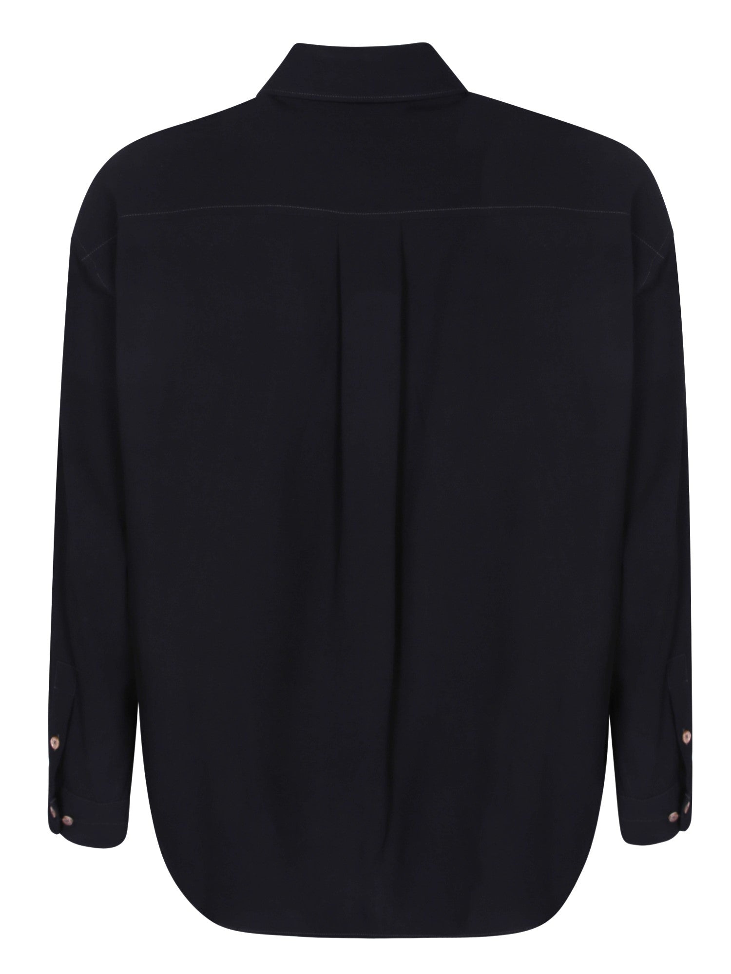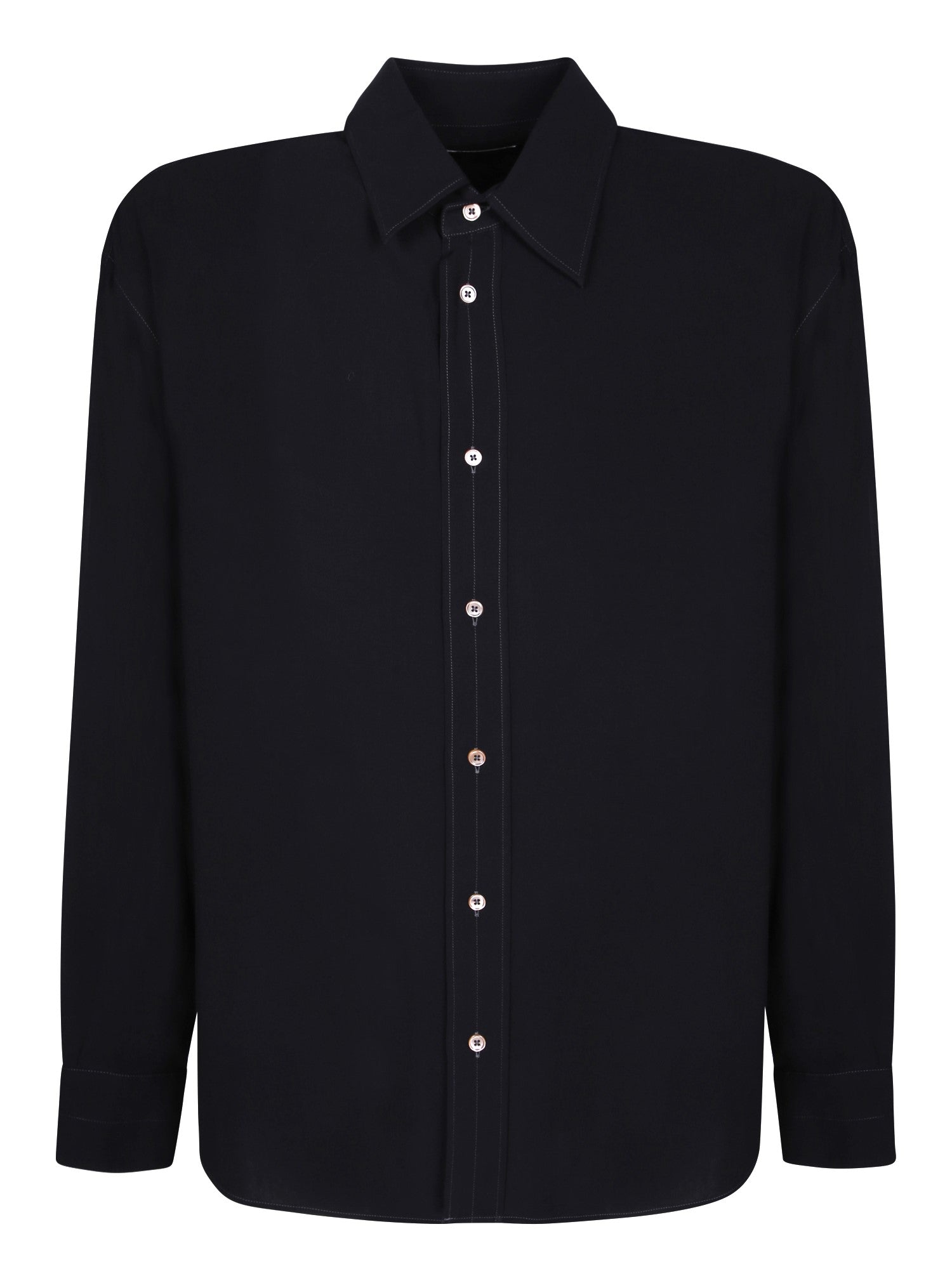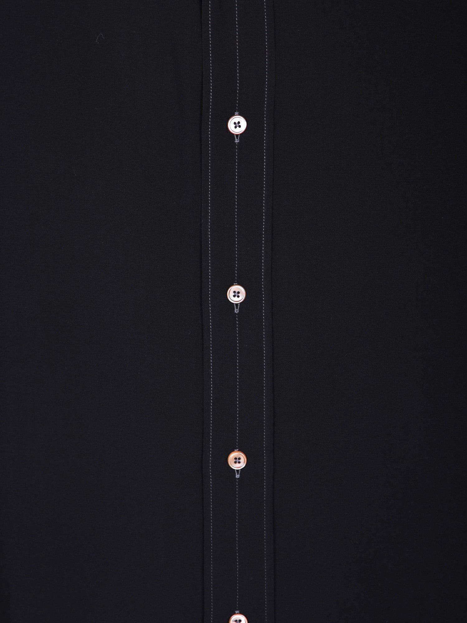 Smooth fabric shirt in black. Features a classic collar, button front closure, and long sleeves.